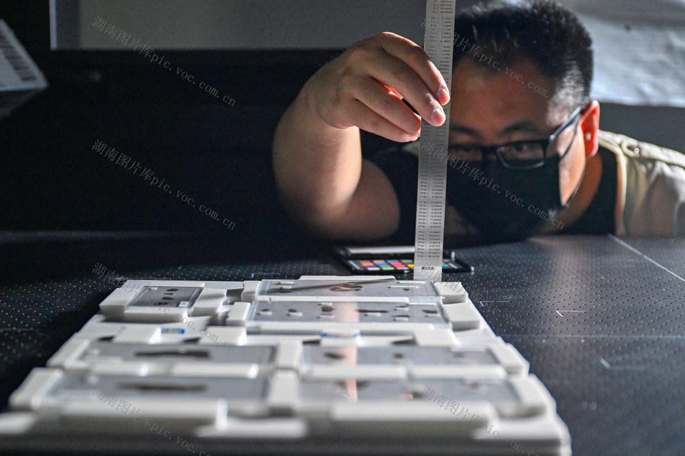2025年9月11日,湖南省博物馆文物摄影室,工作人员对长沙子弹库战国帛书残片进行高清扫描。郭立亮 摄