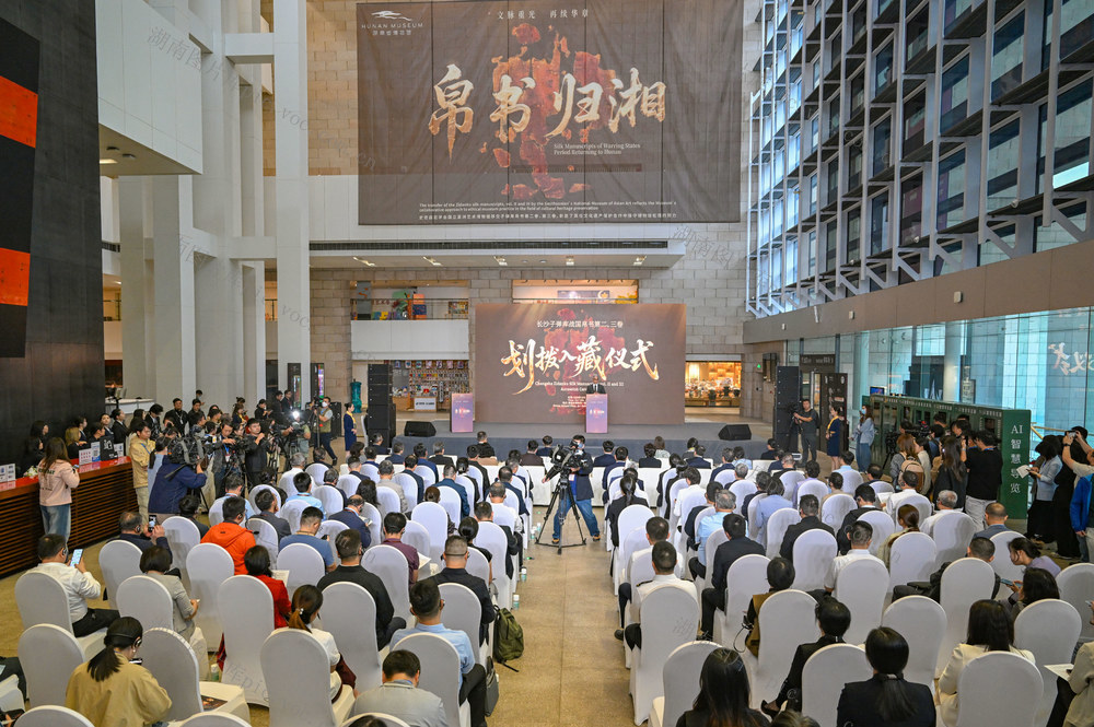 2025年10月13日,长沙子弹库战国帛书第二、三卷《五行令》与《攻守占》划拨入藏仪式在湖南省博物馆举行。图为划拨入藏仪式现场。郭立亮 摄