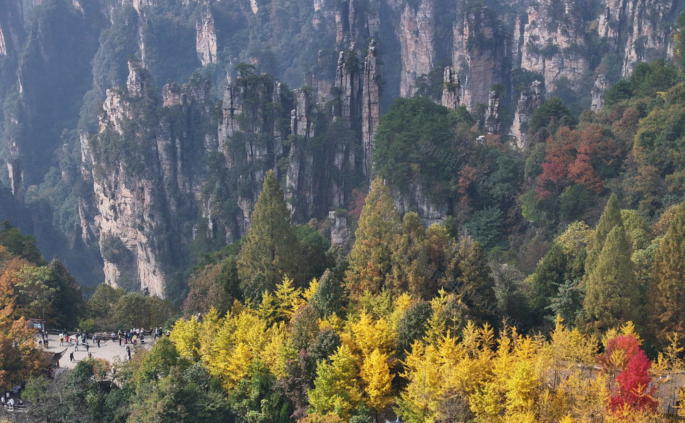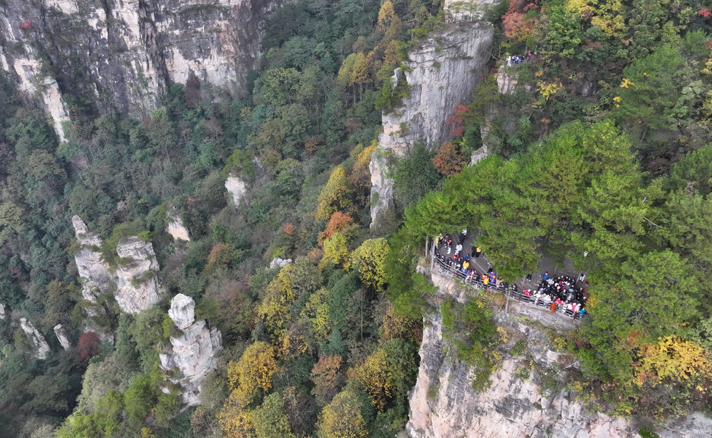 2025年11月4日,湖南张家界国家森林公园天子山景区,秋色斑斓,景美如画,吸引各地游客赏秋游玩。 吴勇兵 摄