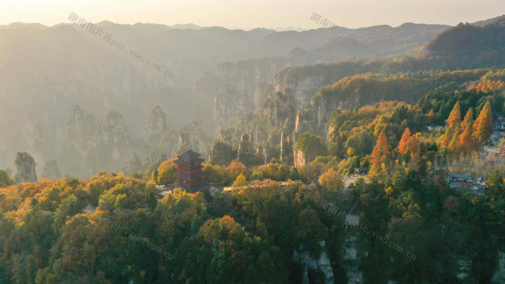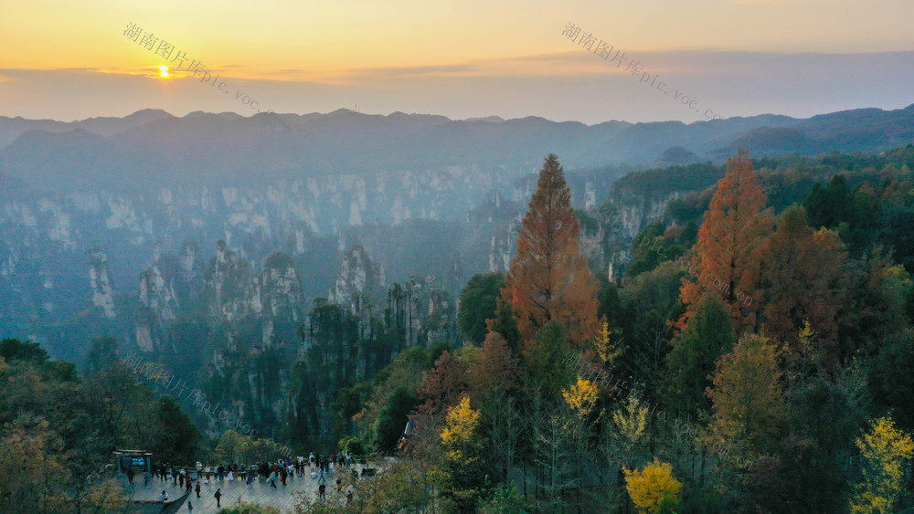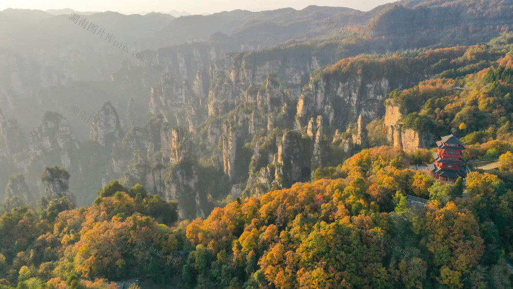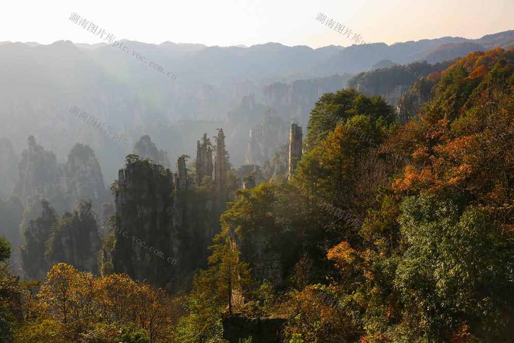 2025年11月15日,初冬时节,湖南省张家界国家森林公园天子山,连绵峰林在五彩树木的装点下,更显诗情画意,美不胜收。曾勇 摄