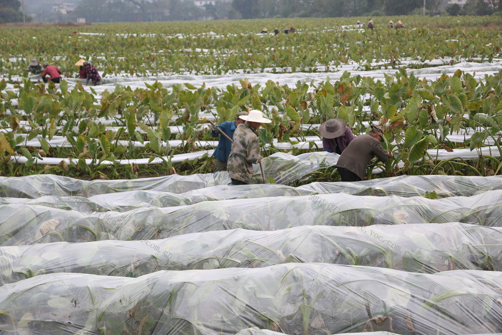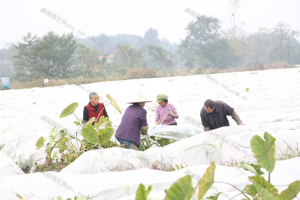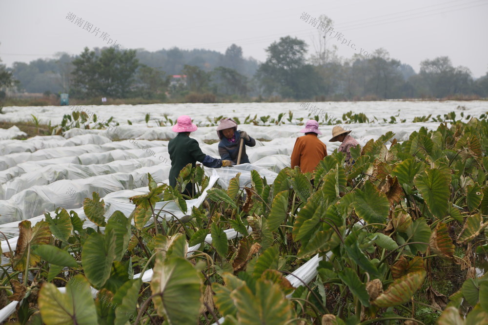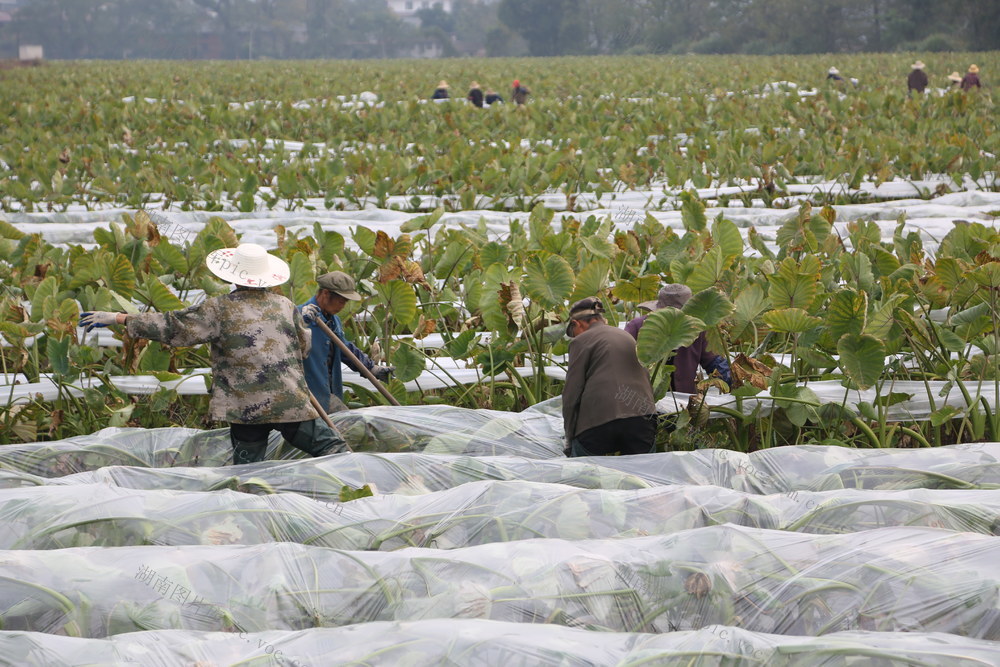 12月2日,随着冬季一波又一波冷空来袭,资兴市香花村香芋种植户抢抓时间下到田间地头,对还未采挖销售的香芋进行覆膜保温保鲜,防范低温冻害,让香芋在田地里安全过冬。欧祖生 摄