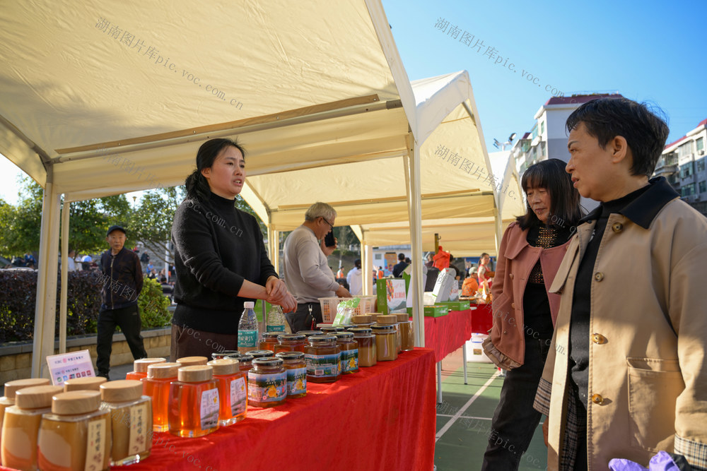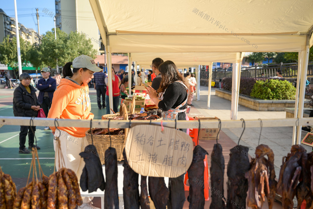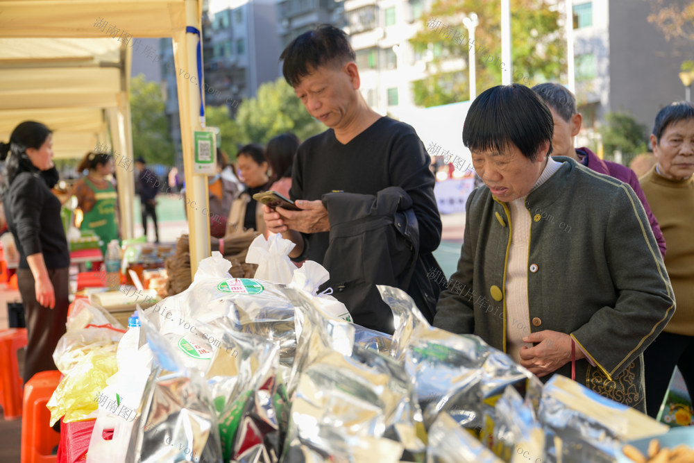 2025年12月19日,湖南省资兴市唐洞街道康家塘篮球场,市民在选购农副产品。(何洪海 曹裴媛 摄)