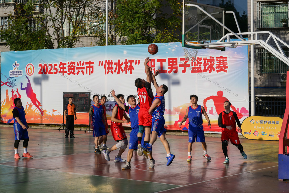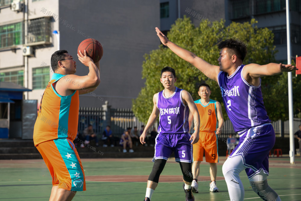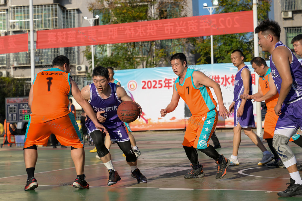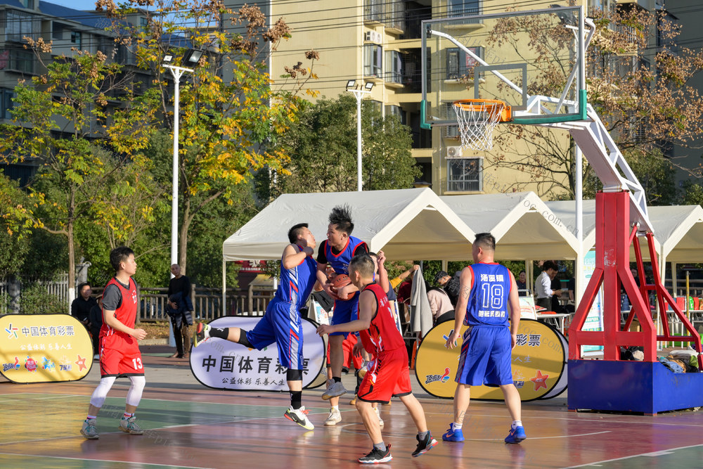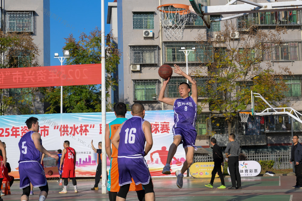 2025年12月19日,湖南省资兴市唐洞街道康家塘篮球场,运动员在进行篮球比赛。(何洪海 曹裴媛 摄)