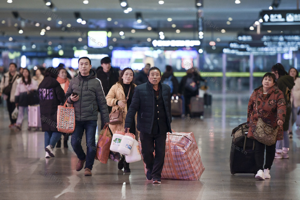 2020年1月10日,长沙火车南站,旅客携带行李出站。当天,2020年春运大幕开启,至2月18日结束,为期40天。春运期间,长沙南站预计全站(含湖南境内京广高铁、沪昆高铁18个高铁站)发送旅客880万人(日均22万人),同比增加103.6万人,增长13.3%。高峰日预计发送28万人。辜鹏博 摄
