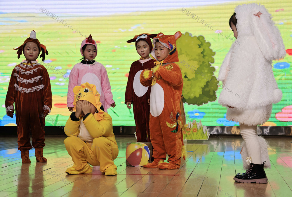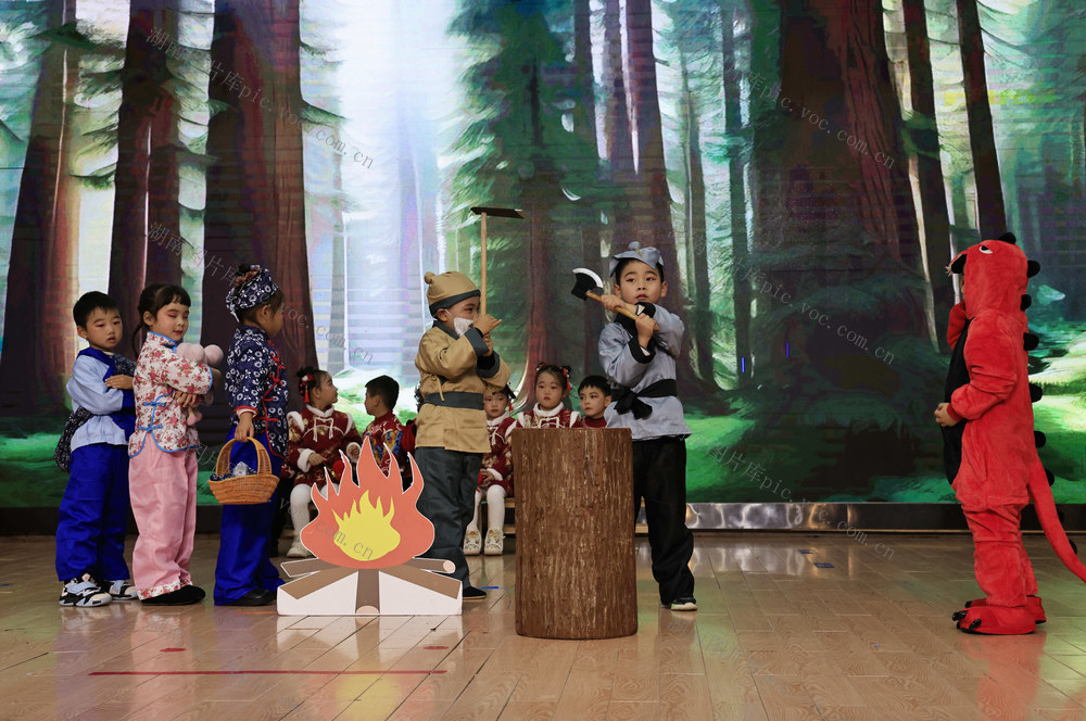 2025年12月31日,张家界市武陵源区索溪中心幼儿园的小朋友在表演情景剧。 吴勇兵 摄