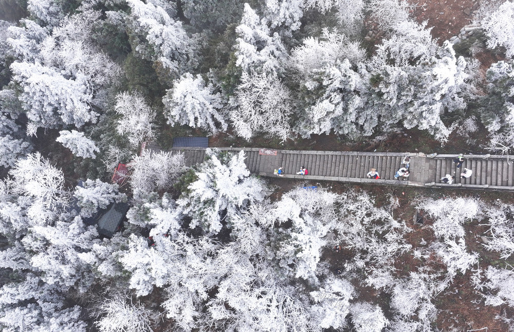 2026年1月3日,游客在湖南省衡阳市南岳衡山风景区赏景游玩。(曹正平摄影报道)