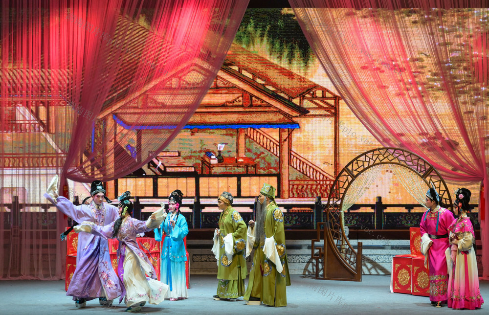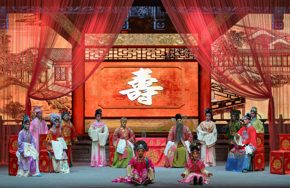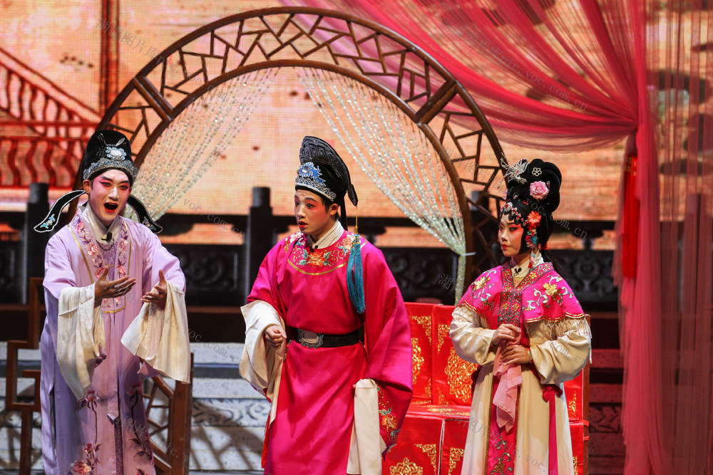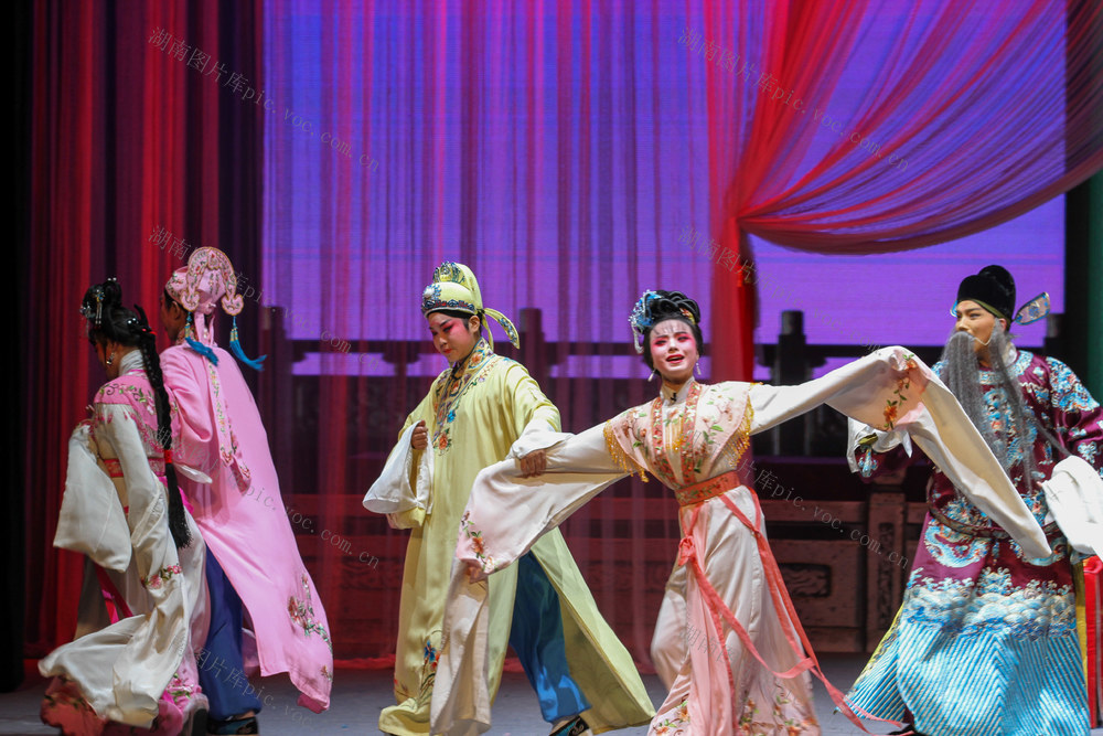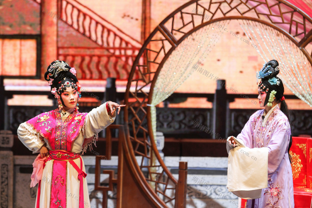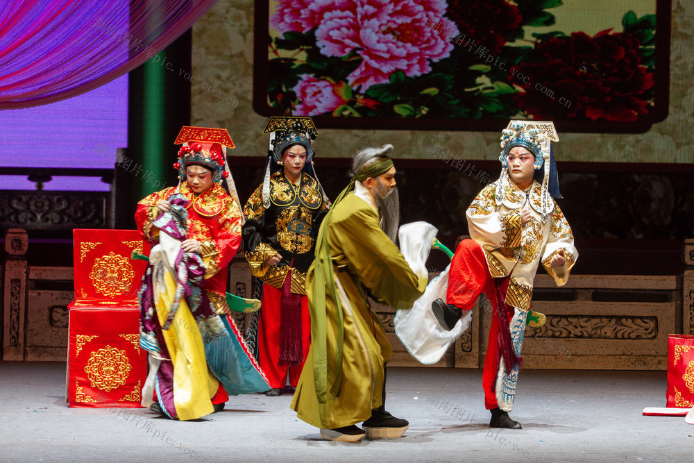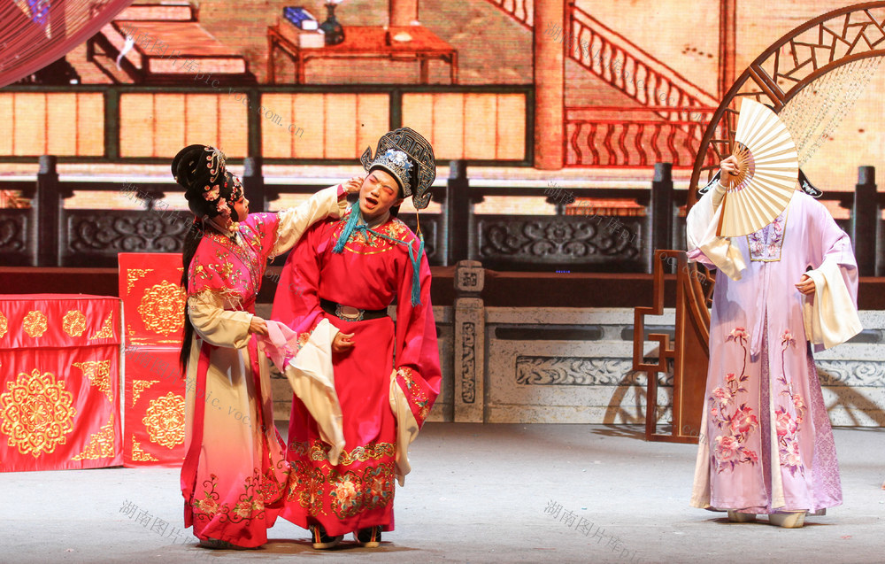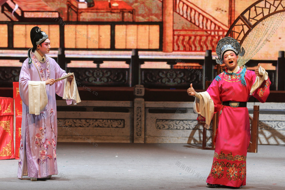 2026年1月4日晚,资兴剧院,演员在表演花鼓戏《五女拜寿》。李强辉 何洪海 摄