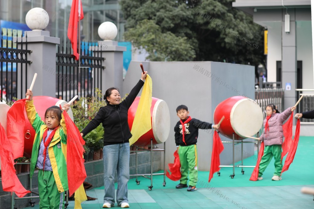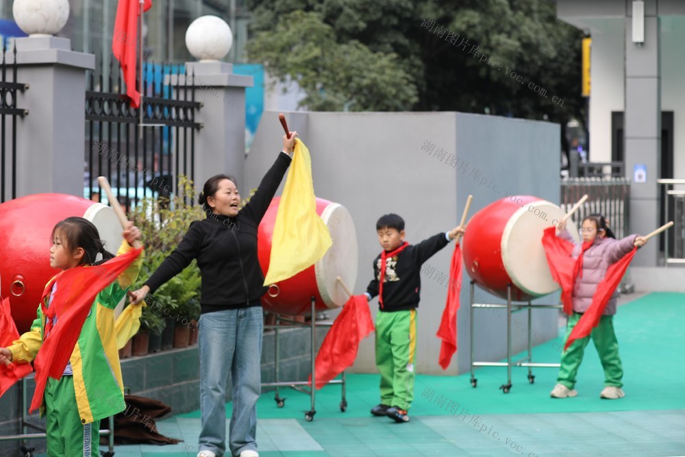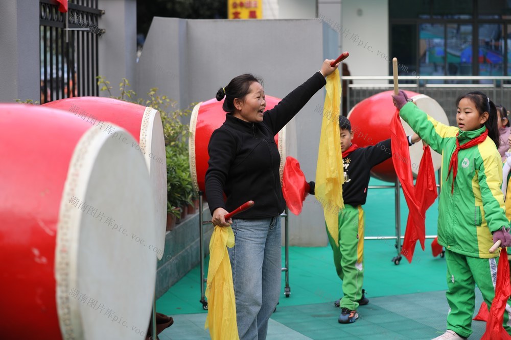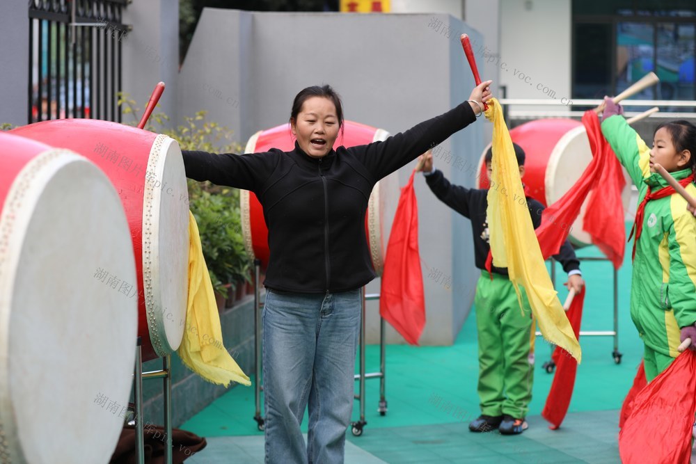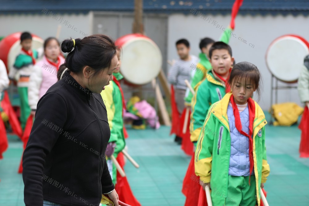 1月7日,在湘西土家族苗族砂子坳小学,老师在给同学们示范打苗鼓。彭彪 摄