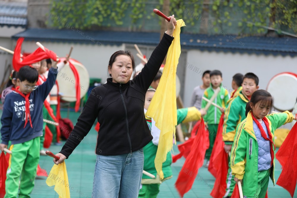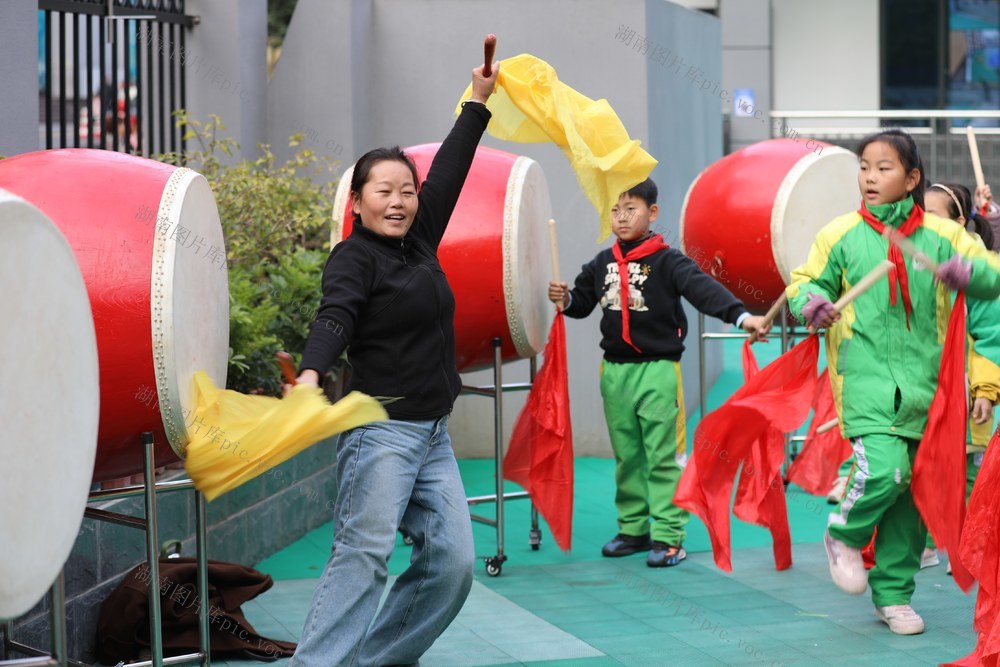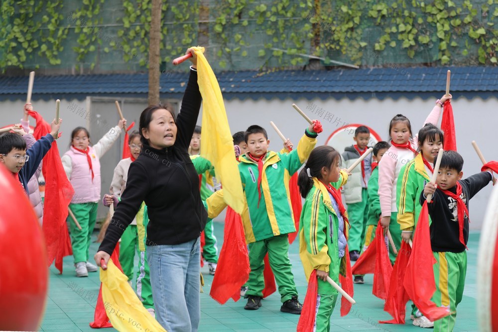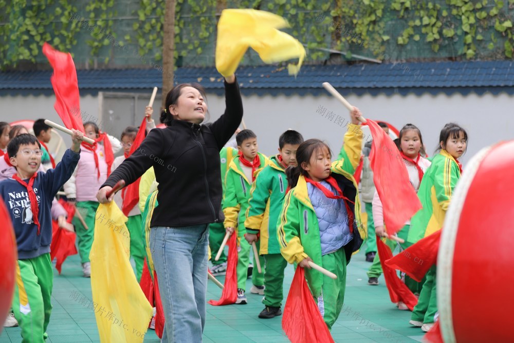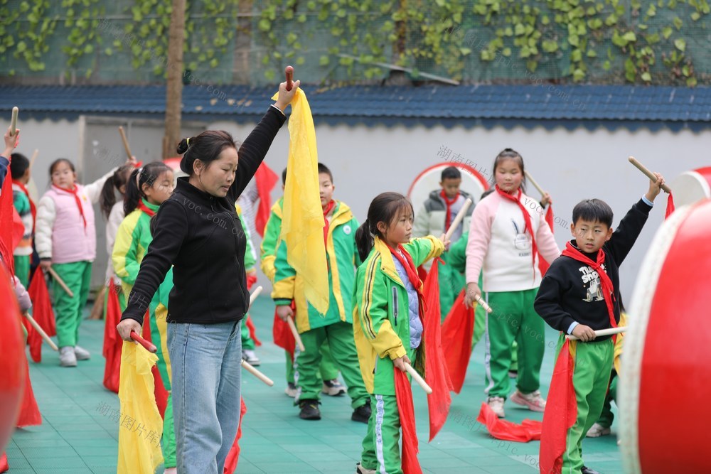 1月7日,在湘西土家族苗族砂子坳小学,老师在给同学们示范打苗鼓。彭彪 摄