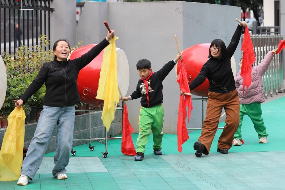 1月7日,在湘西土家族苗族砂子坳小学,同学们在老师的指导下练习苗鼓。彭彪 摄