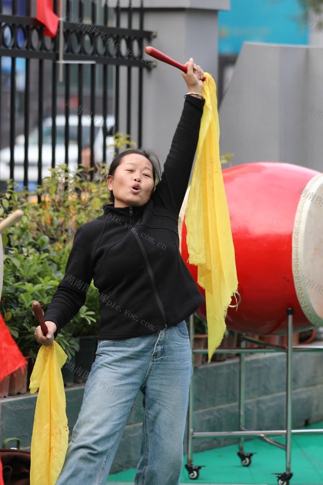 1月7日,湘西土家族苗族自治州砂子坳小学,老师在课后服务苗鼓社团中为学生示范打苗鼓。彭彪 摄