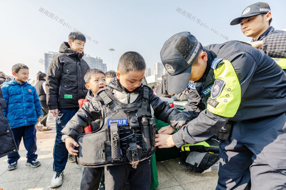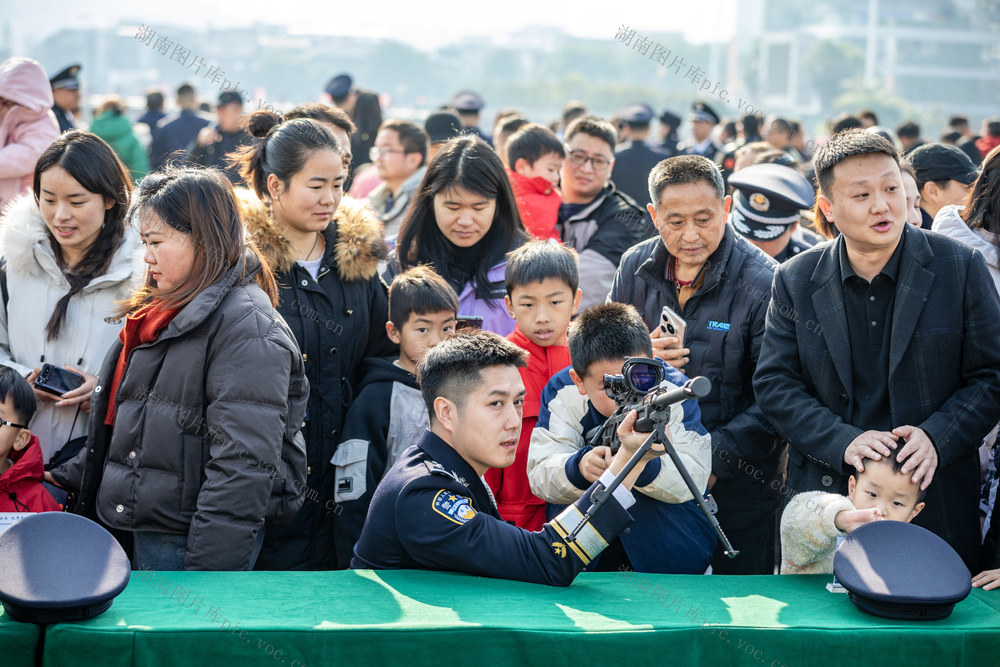 2026年1月10日,吉首市世纪广场,市民在参观体验警用装备。彭璟 摄