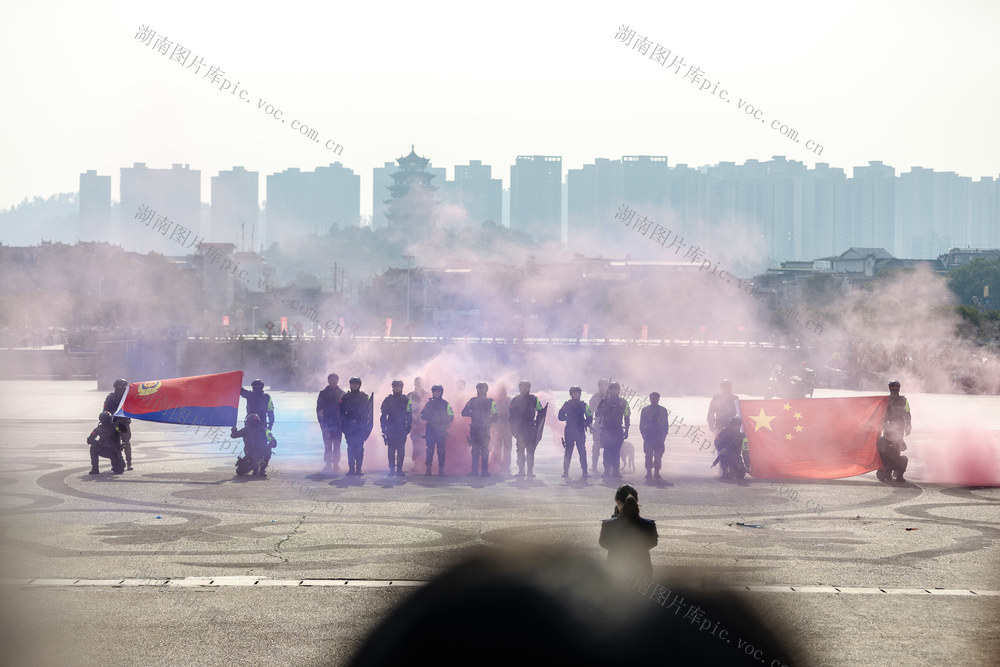 2026年1月10日,吉首市世纪广场,特警在进行防暴演练。彭璟 摄