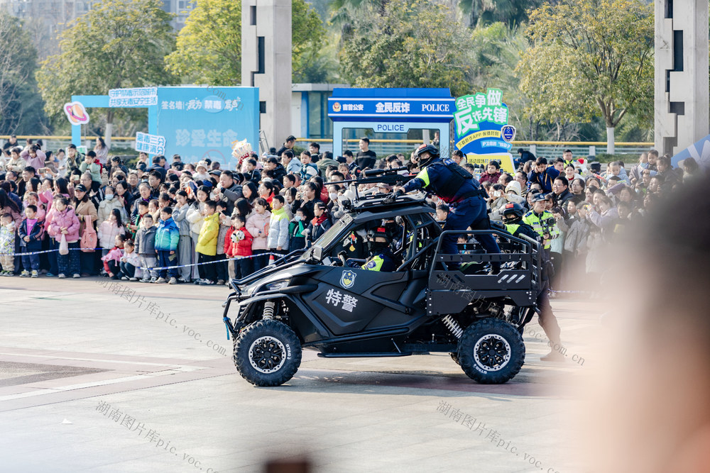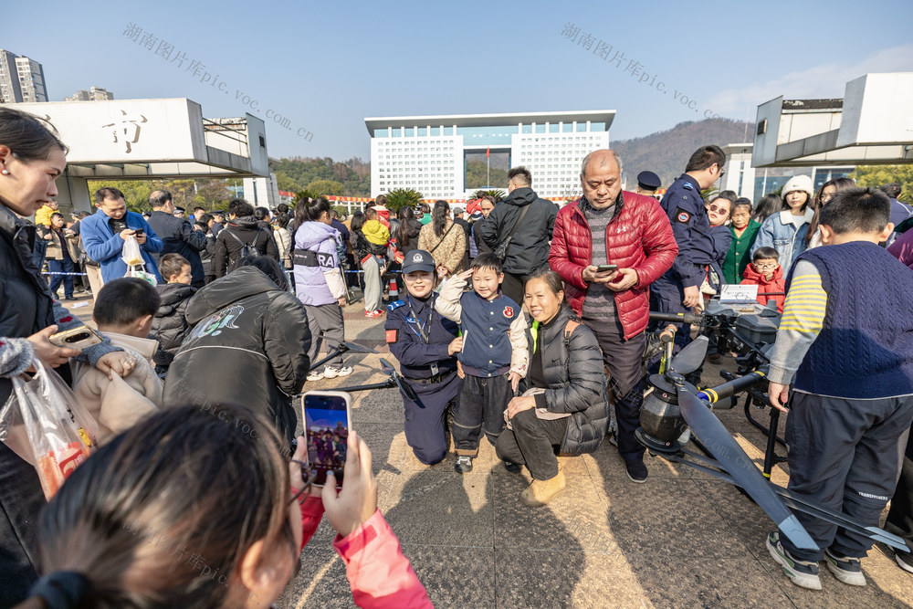 2026年1月10日,吉首市世纪广场,市民在警用装备展示区拍照。彭璟 摄