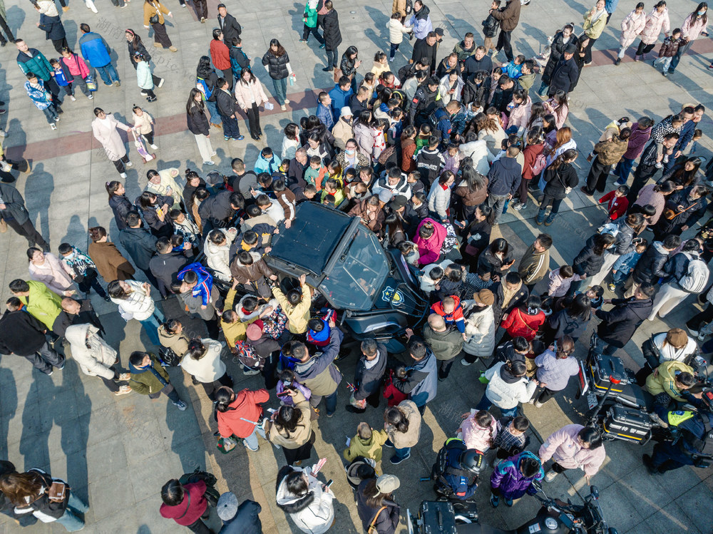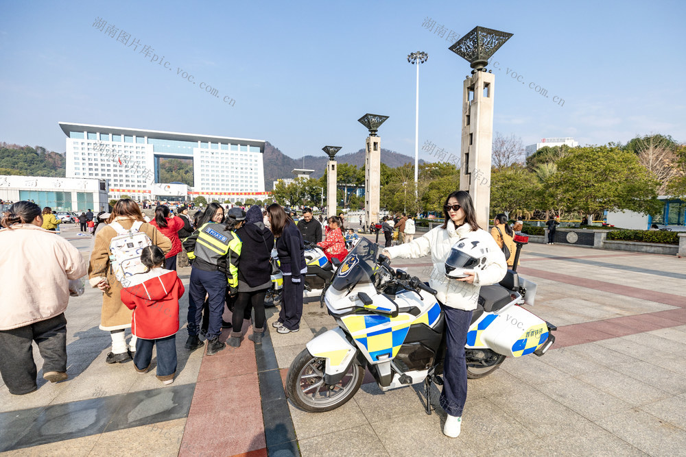 2026年1月10日,吉首市世纪广场,市民在体验骑警摩托。彭璟 摄