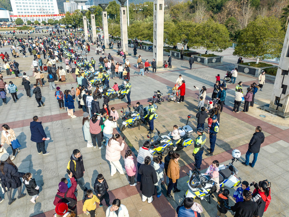 2026年1月10日,吉首市世纪广场,市民在参观体验骑警摩托。彭璟 摄
