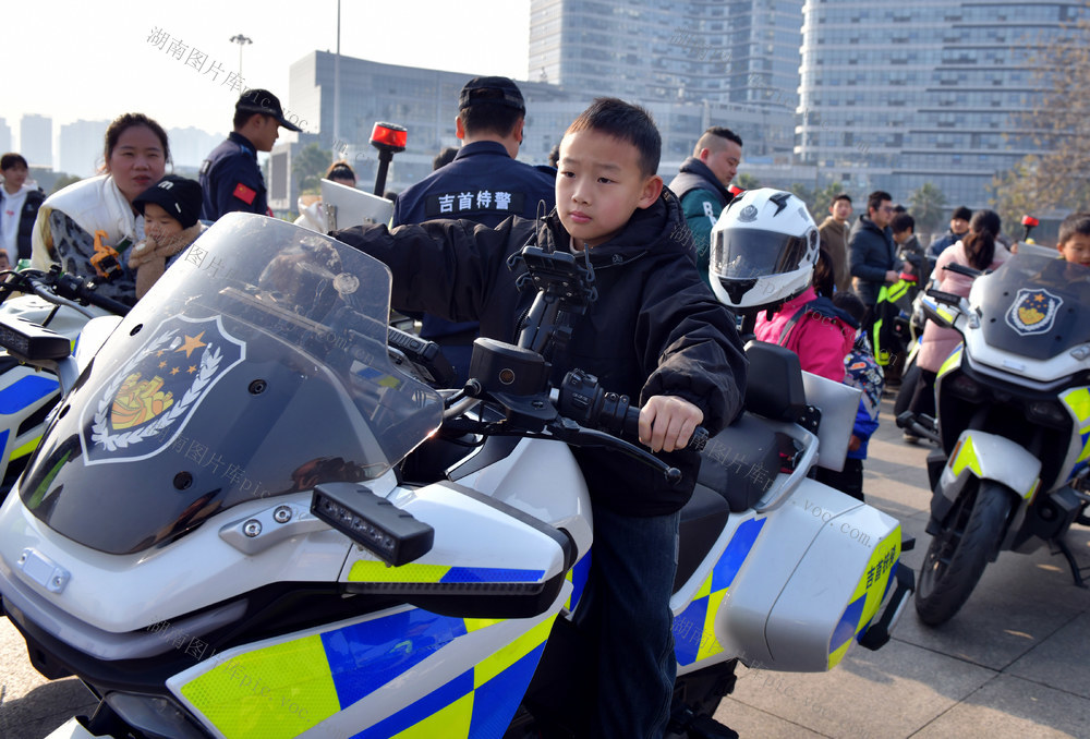 1月10日,吉首市世纪广场,小朋友与“警察叔叔”合个影。刘丹 姚方 摄影报道
