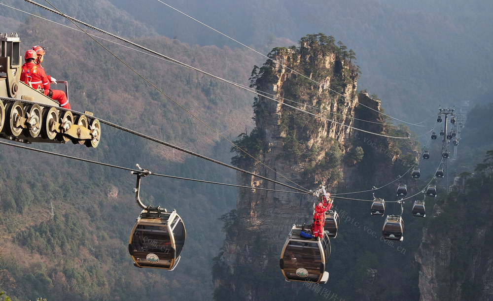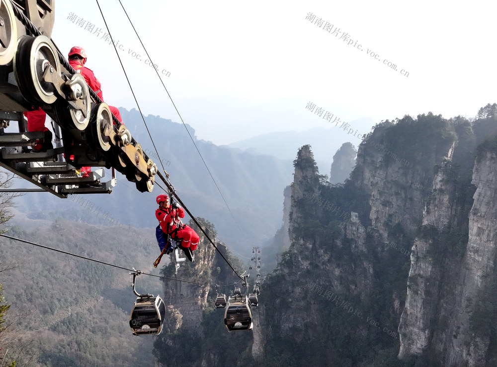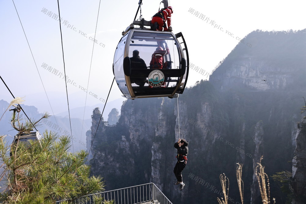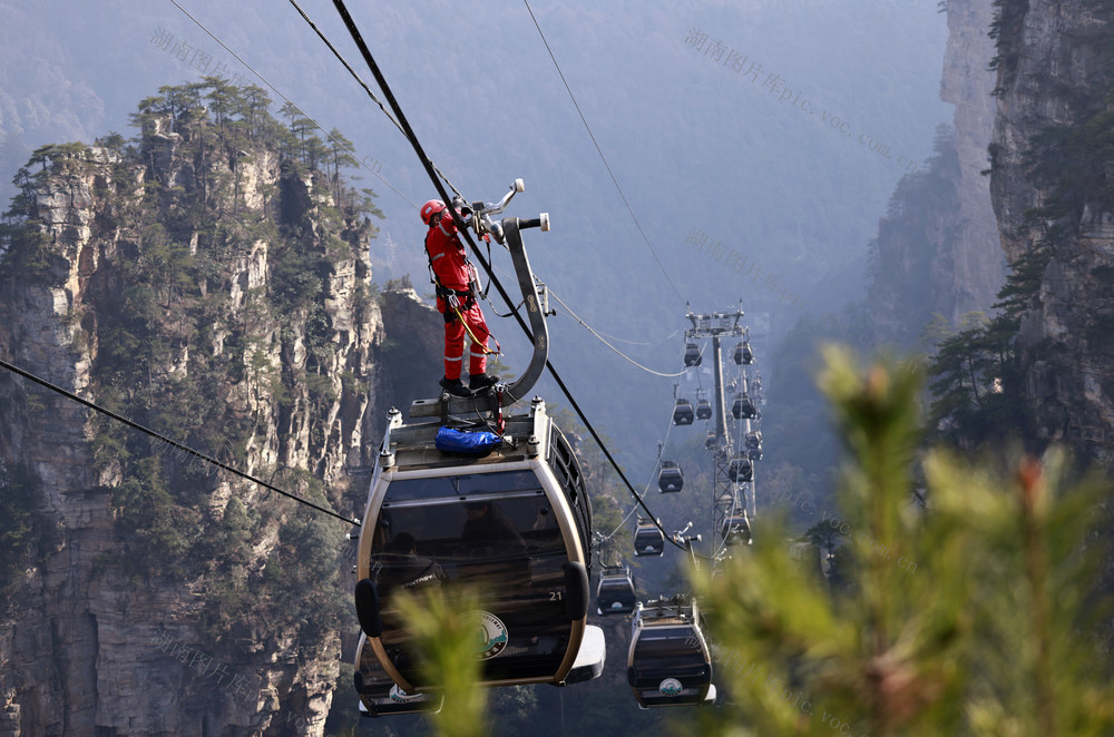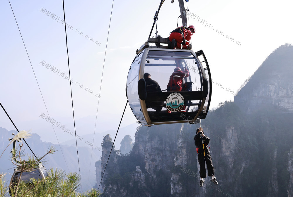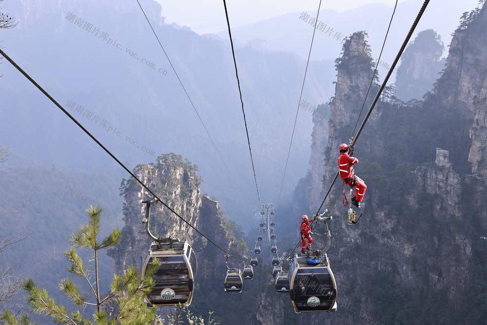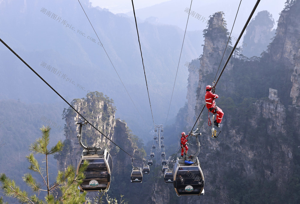 2026年1月15日,湖南省张家界国家森林公园在天子山索道开展冬季高空救援模拟演练。通过演练检验索道安全性能及景区各部门快速应变处置能力,保障旅游安全。吴勇兵 摄