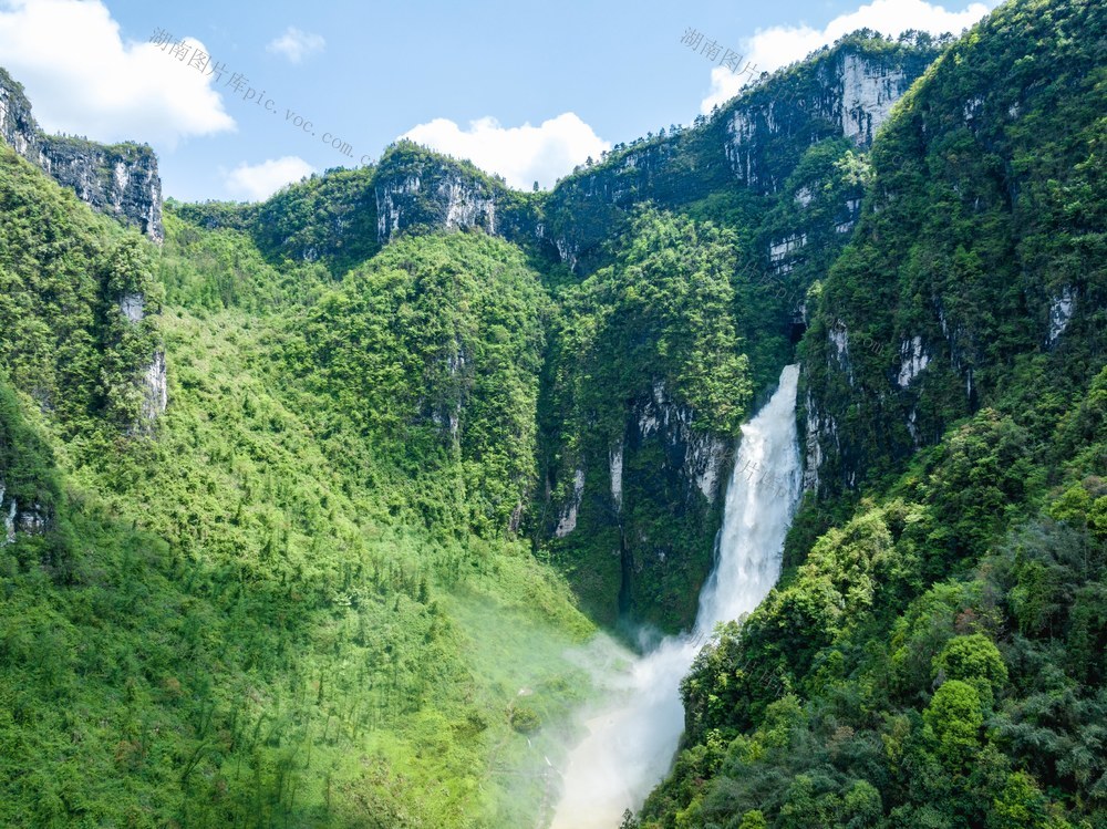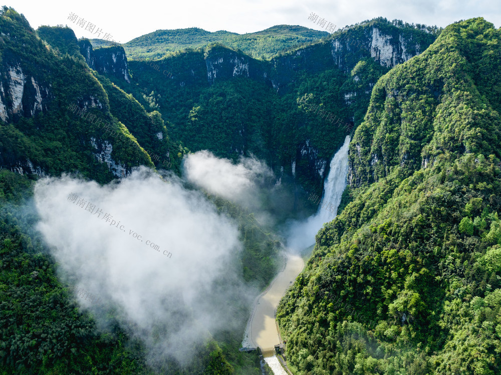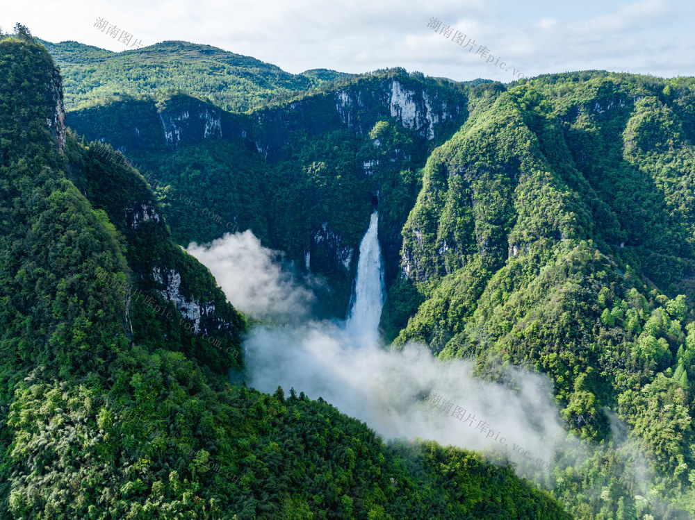 2026年3月16日,吉首市矮寨镇大龙洞风景区,瀑布如白练悬空,飞泻而下,在雾气升腾间,与峡谷、翠林相映成景,壮美如画。 彭璟 摄