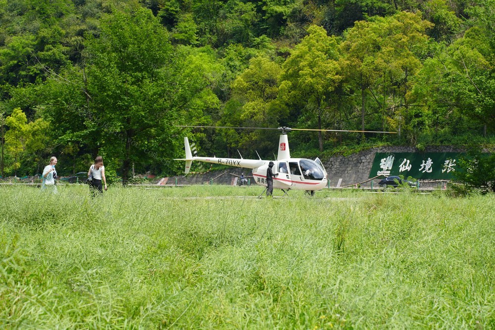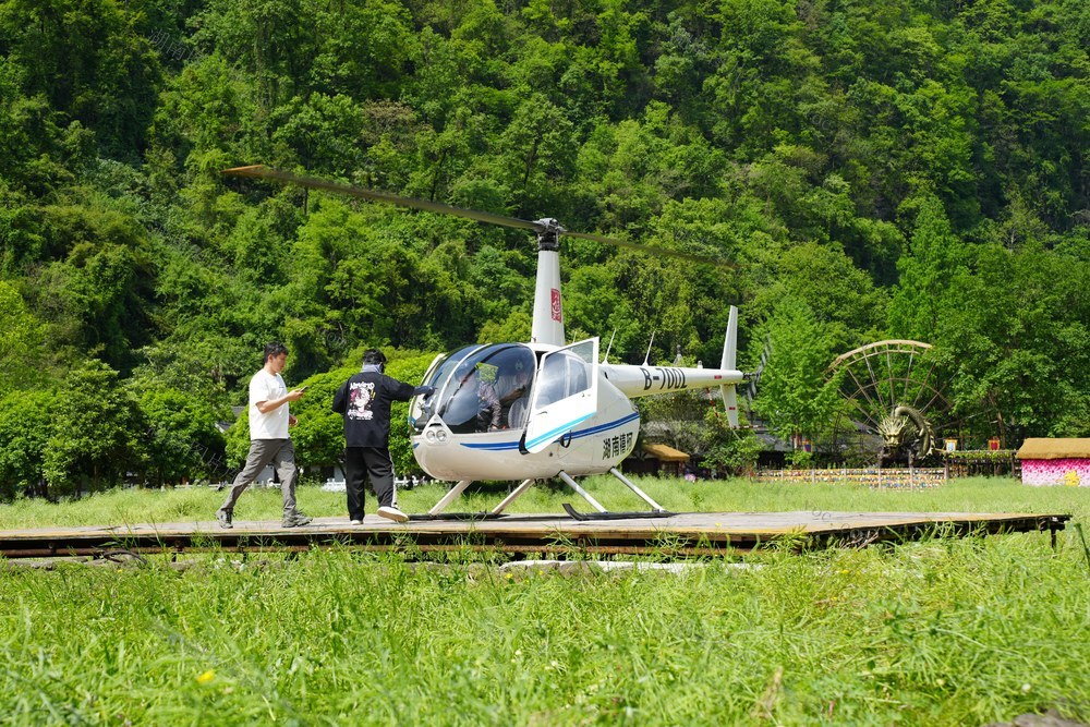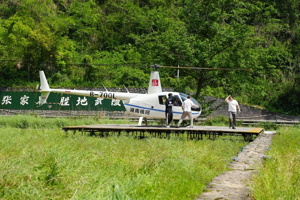 2026年4月19日,湖南省张家界市武陵源区黄龙洞景区一停机坪,观光直升机项目迎来客流高峰,不少游客专程前来体验高空瞰峰林的独特乐趣。(李尚引 摄)