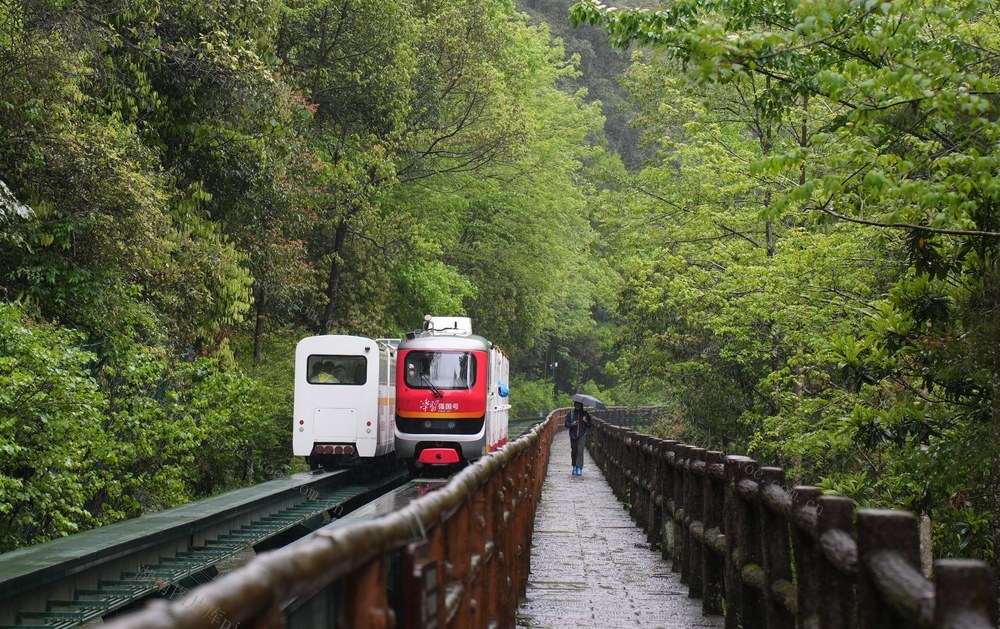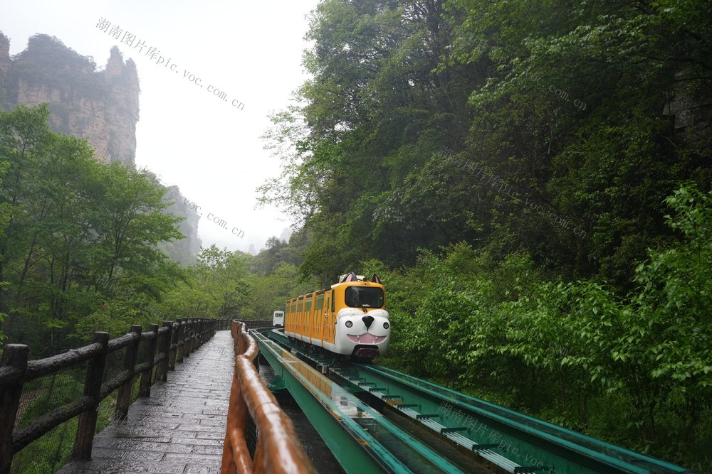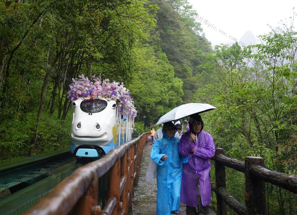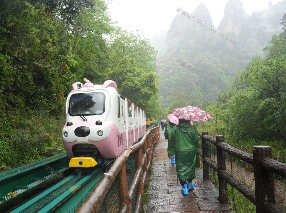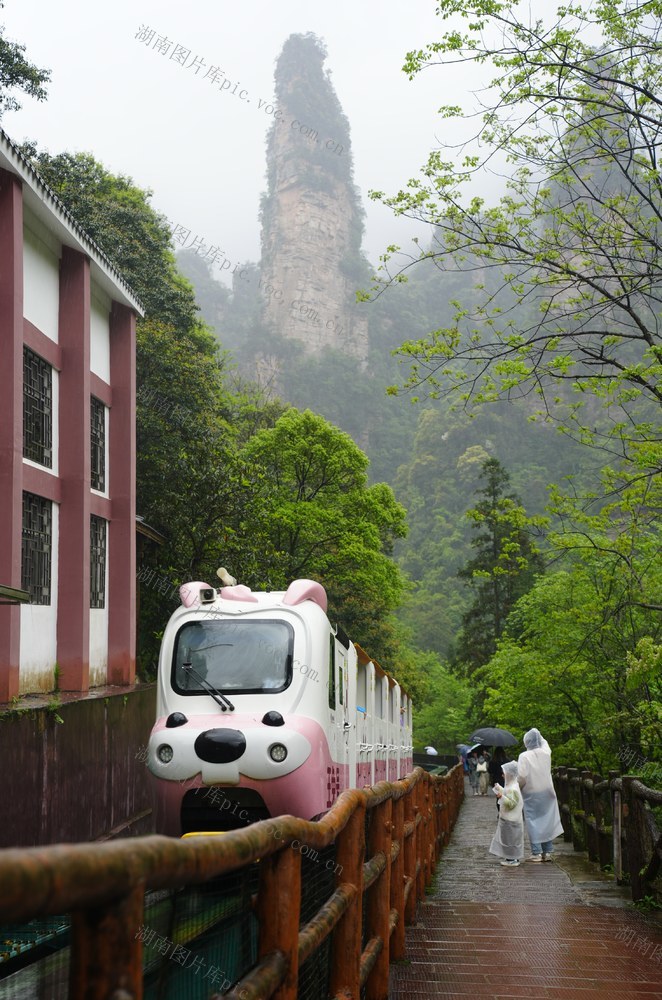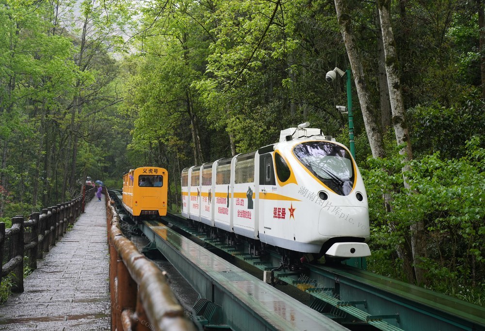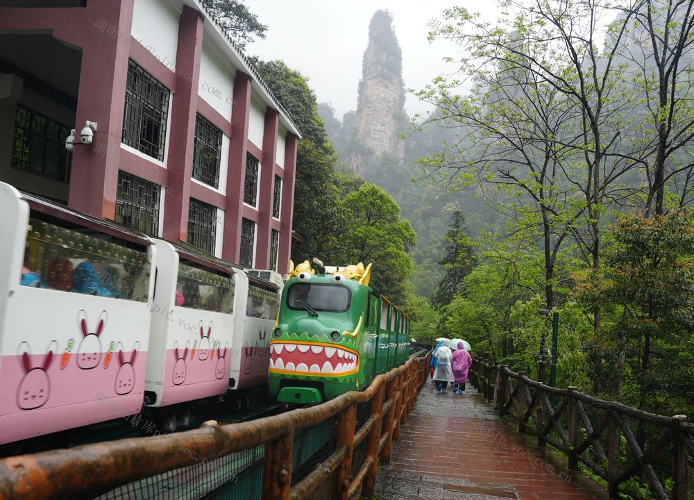 2026年4月20日,在湖南省张家界国家森林公园十里画廊景区,造型萌趣的观光小火车化身为“移动观景平台”,在峰林幽谷间缓缓穿行,与绿意盎然的奇峰秀色相映成趣,勾勒出一幅人与自然和谐共生的生态画卷。(李尚引 摄)