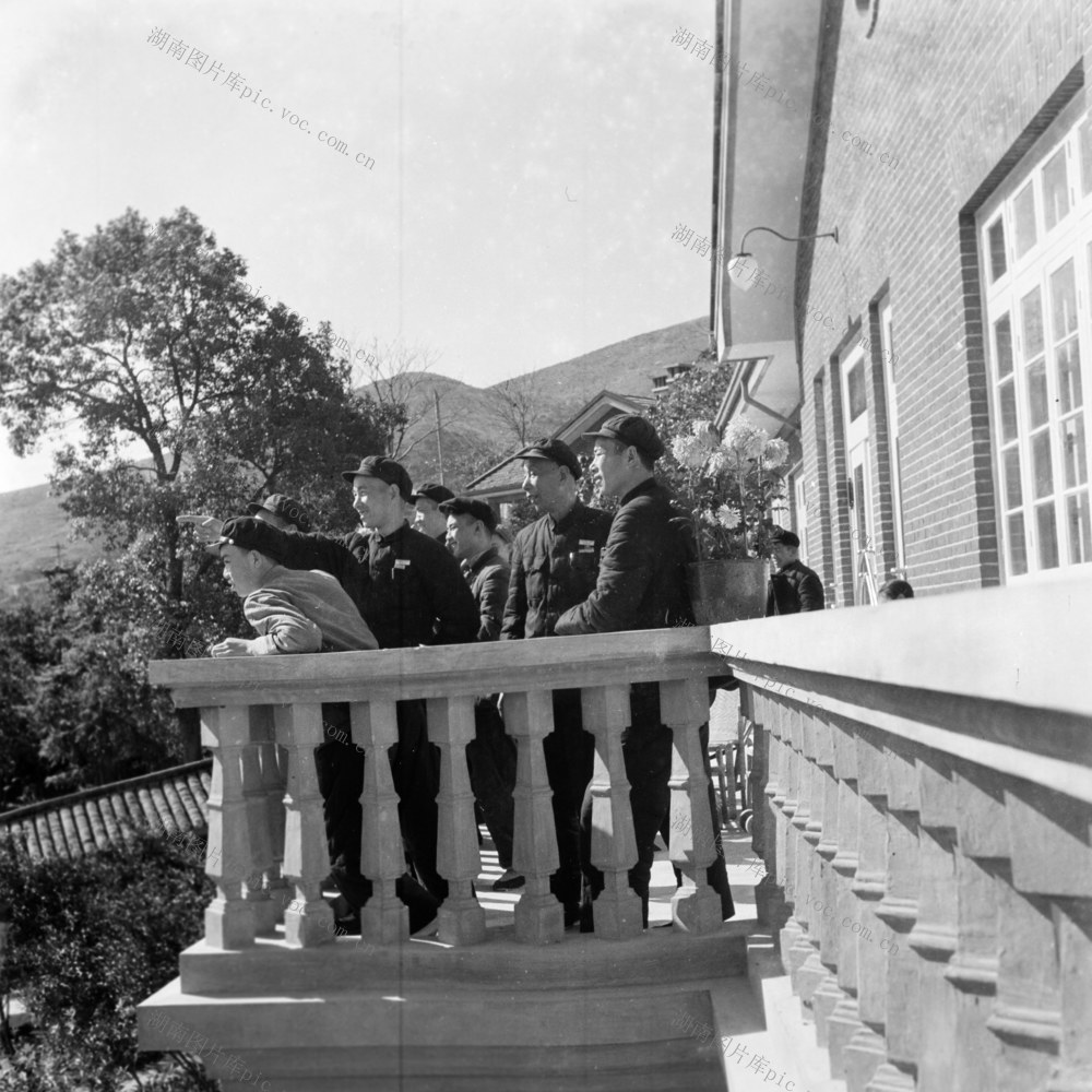 1953年11月,长沙市岳麓山工人疗养院,来疗养的工人在疗养室平台上眺望湘江景色。这是湖南省第一个规模较大的工人疗养院,吸收患一般性疾病和身体衰弱的职工,进行较短期的治疗和休养。易地 摄