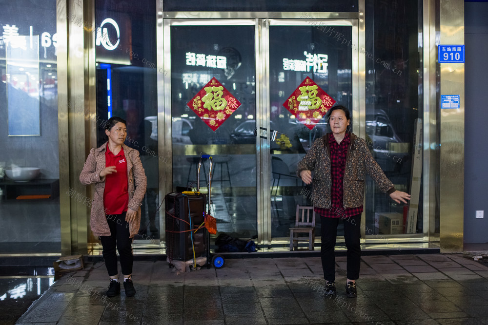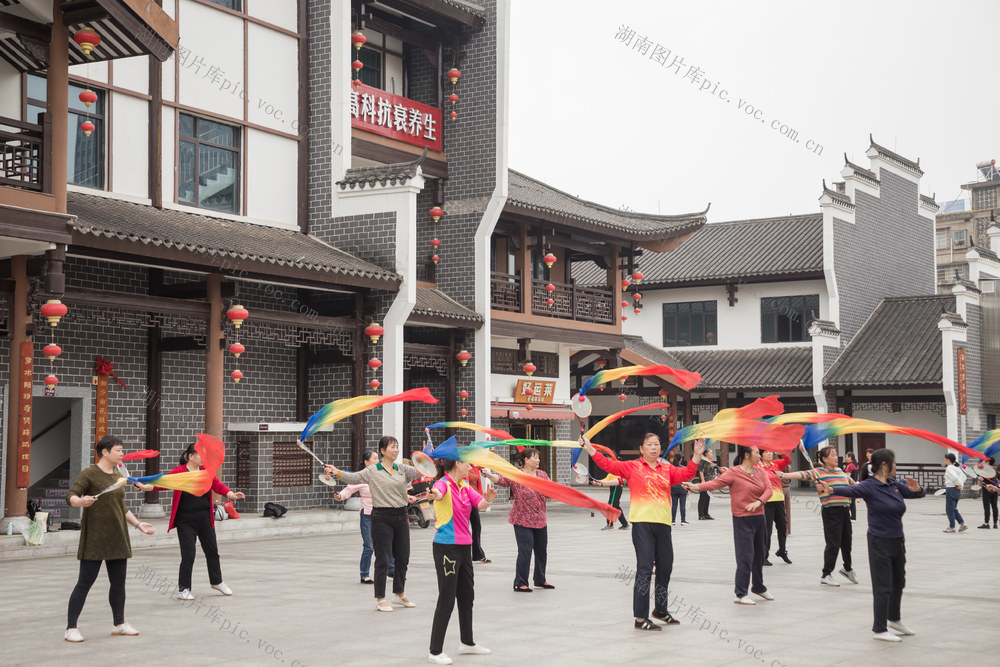 2023年4月16日,湘潭湘乡市,市民在跳广场舞。 贺再亮 摄
