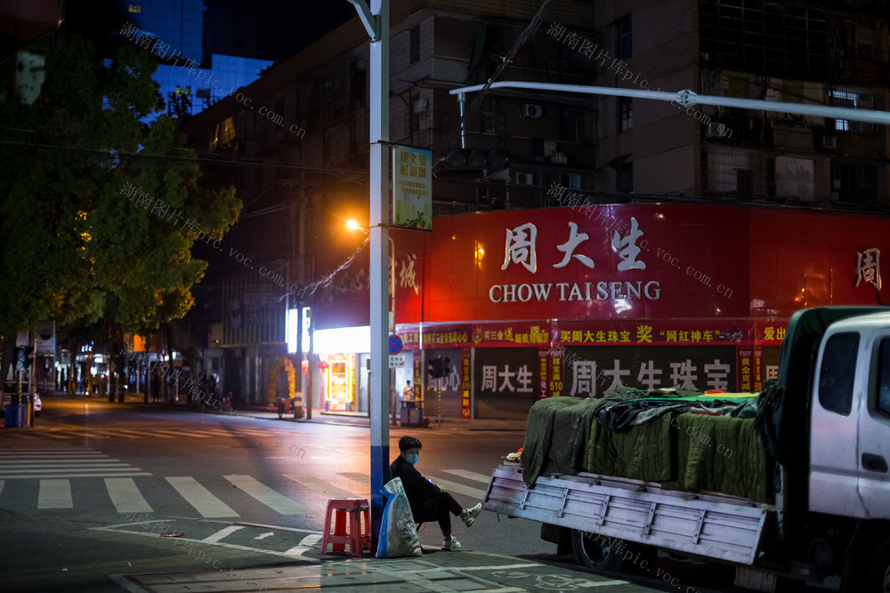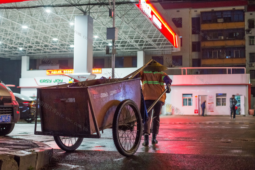2023年4月16日,湘潭湘乡市,上夜班的清洁工人。 贺再亮 摄