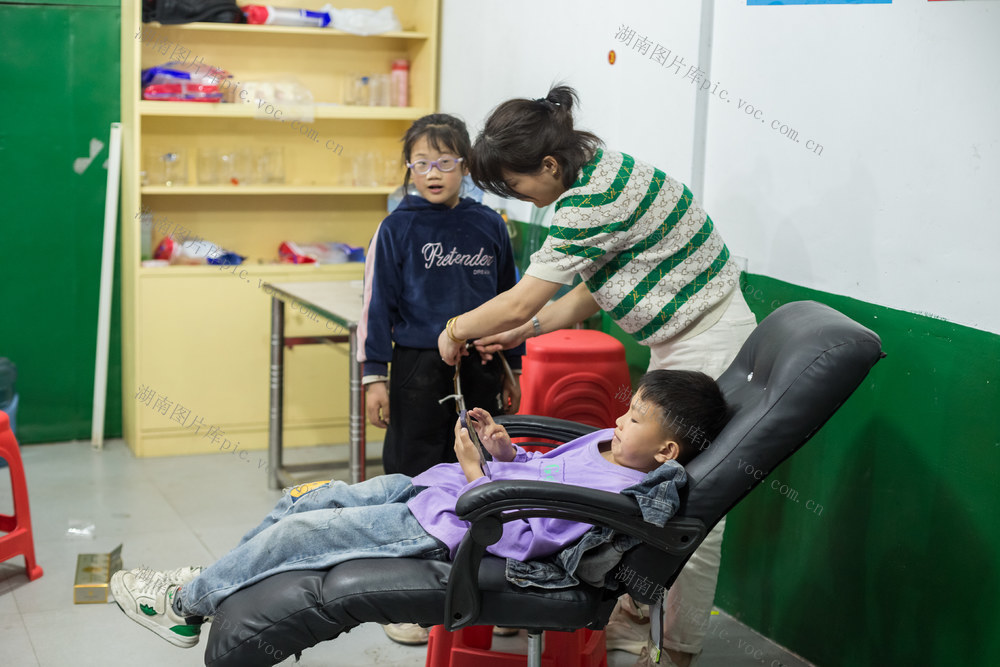 2023年4月16日,湘潭湘乡市,理发店。 贺再亮 摄