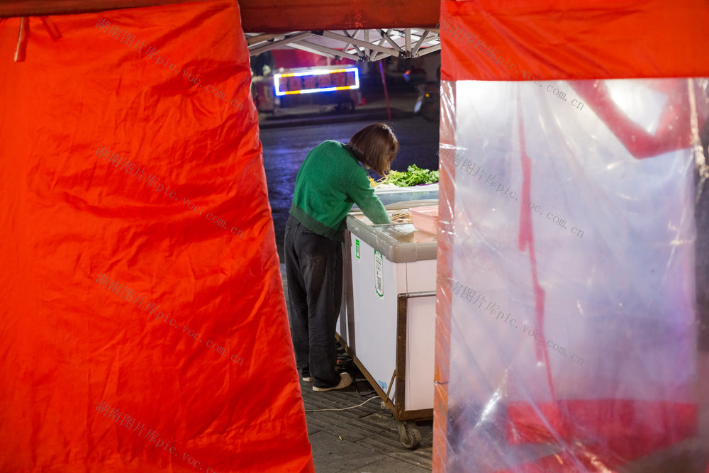 2023年4月16日,湘潭湘乡市,夜色中的摊档。 贺再亮 摄