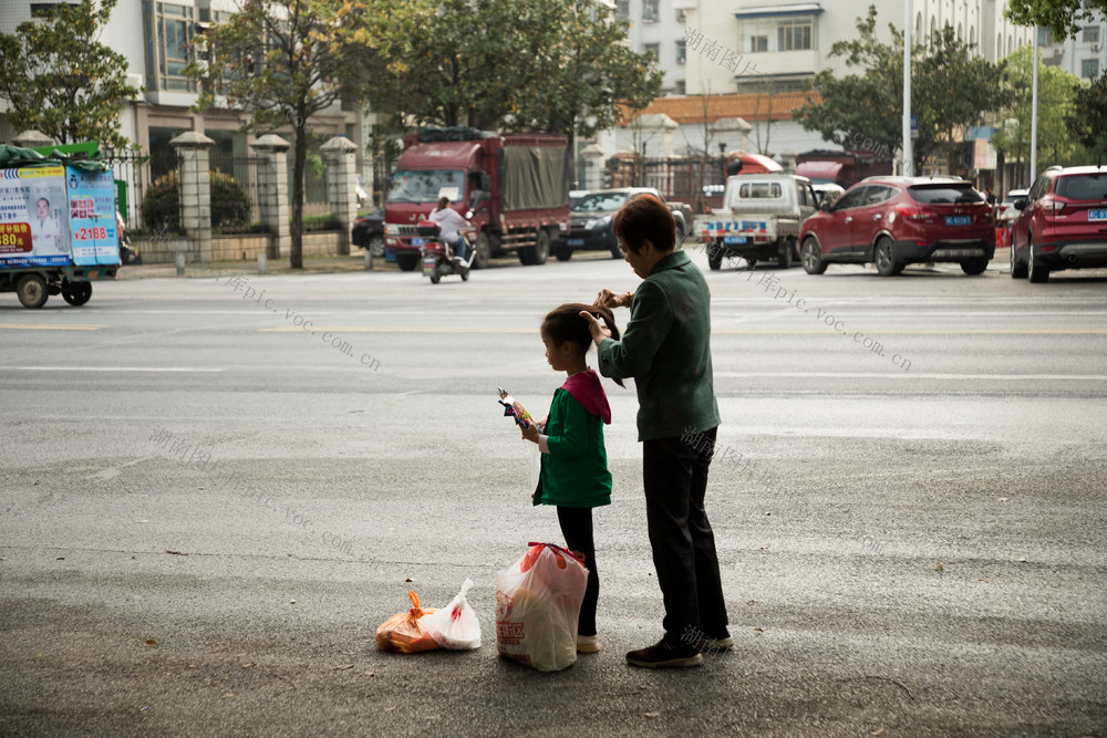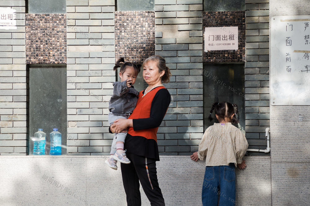 2023年4月16日,湘潭湘乡市,街边梳头的祖孙。 贺再亮 摄