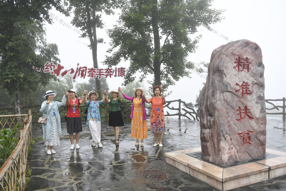 2020年6月11日,花垣县双龙镇十八洞村,远道而来的游客在精准扶贫广场载歌载舞。辜鹏博 摄