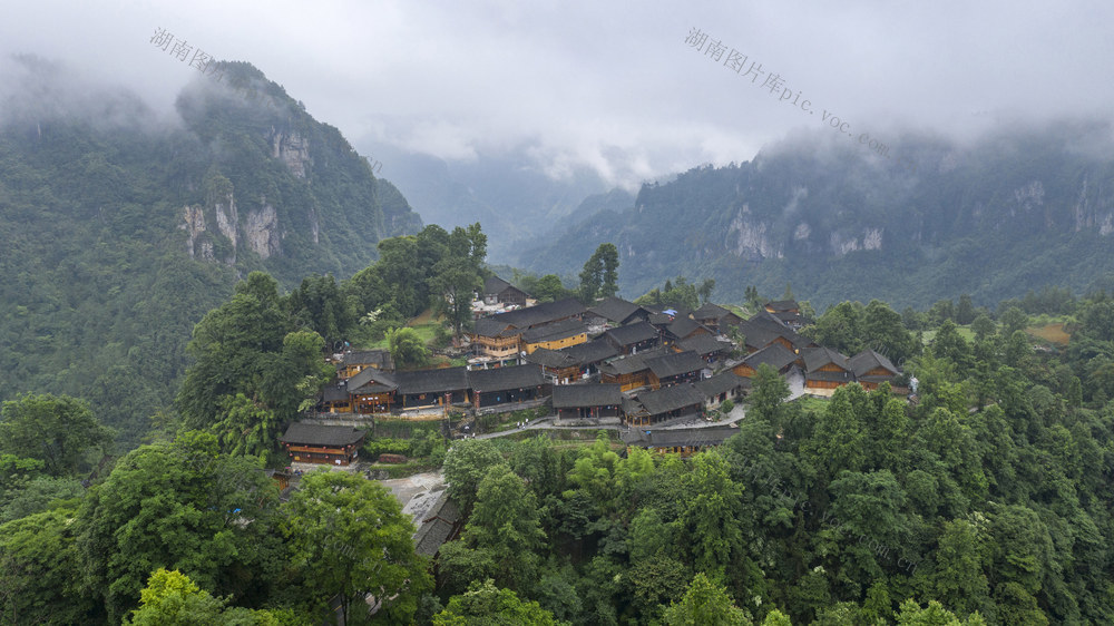 2020年6月11日,细雨中的十八洞村,云遮雾绕,宛若人间仙境。 辜鹏博 摄