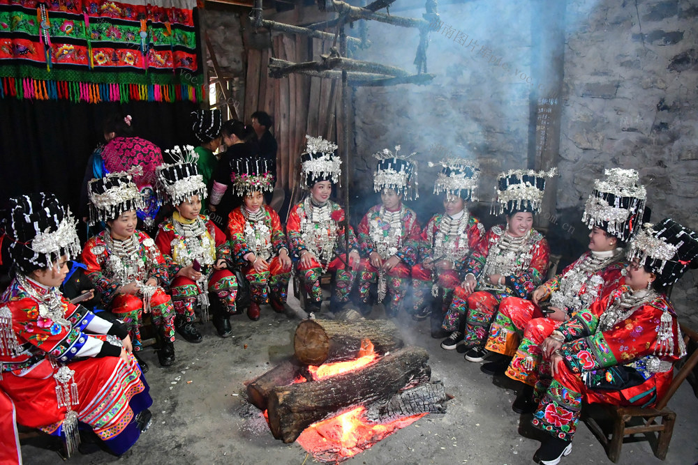 2020年1月9日下午,按照当地婚俗,新娘和迎亲队伍一起“坐火塘”。郭立亮 摄