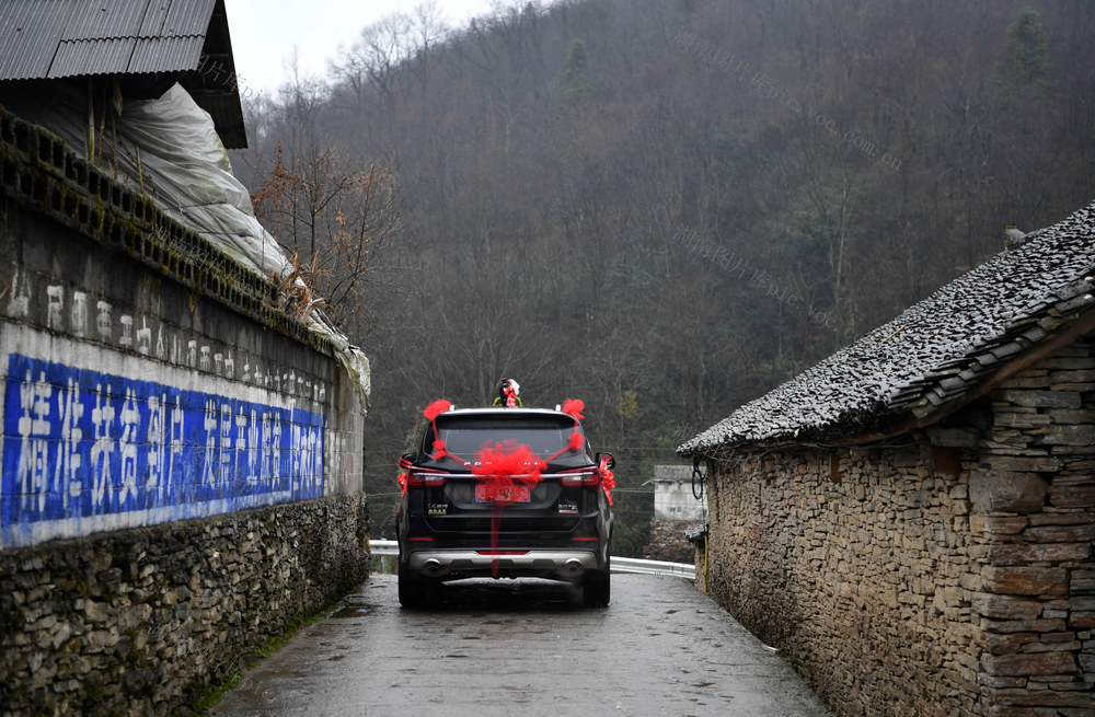 2020年1月9日,妆扮喜庆的婚车前去苗寨接石玉美,小车为吴先照年前贷款购买。郭立亮 摄