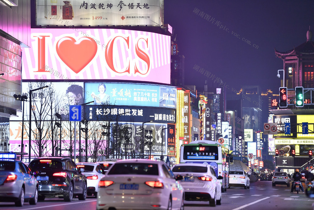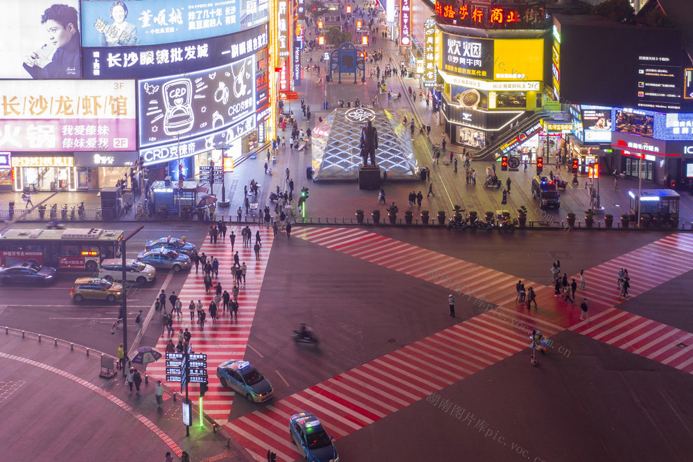 2022年4月14日晚,长沙市天心区解放西路与黄兴路交叉路口,市民、车辆有序穿行。当天,长沙市全域转为低风险地区,成功“摘星”,市民的生产生活秩序逐步恢复正常,长沙街头的烟火气也逐渐浓厚。辜鹏博 摄