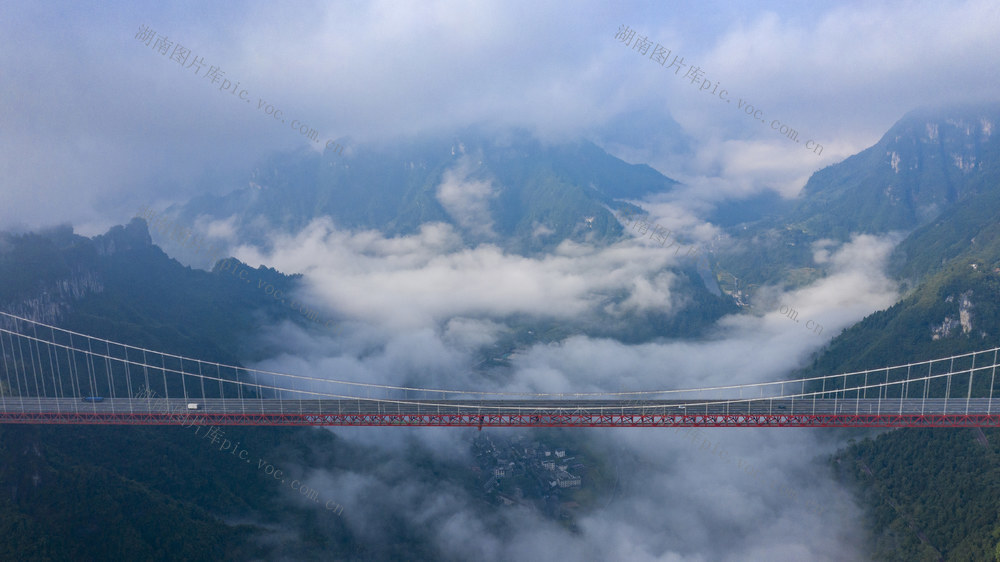 2021年8月22日湘西土家族苗族自治州吉首市矮寨镇,矮寨特大悬索桥云海翻腾,宛如仙境。辜鹏博 摄