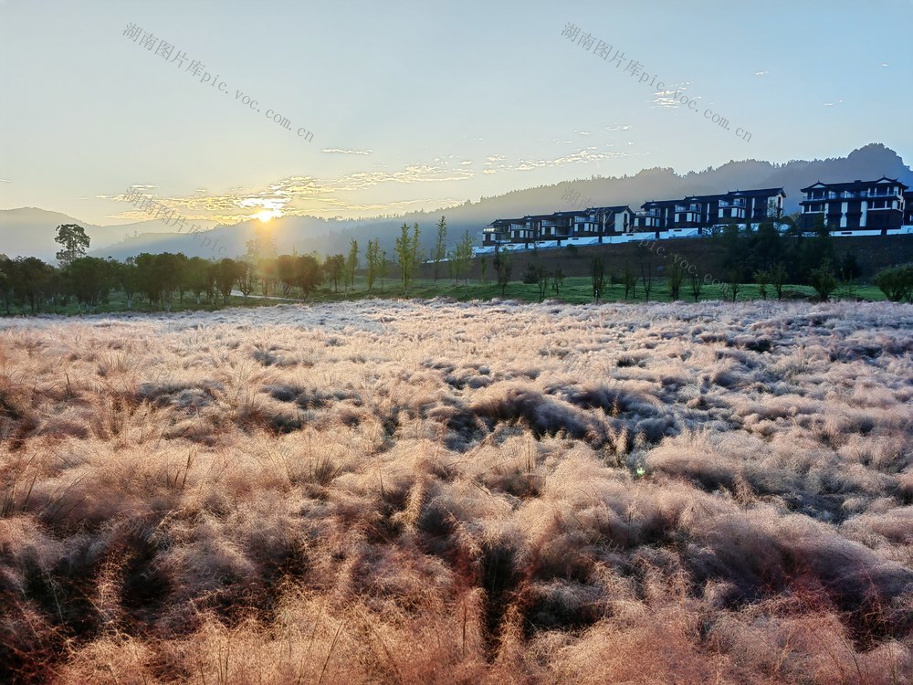 2023年10月8日,湖南省张家界市。寒露节气,张家界雨后放晴,空气清新,百丈峡景区峡谷入口的粉黛花海美如画卷,在秋日晨光沐浴下尽显艳丽妩媚,花海中呈现的爱心图案更令人陶醉不已。 邓道理 摄