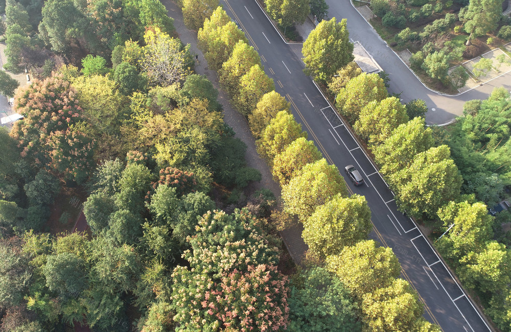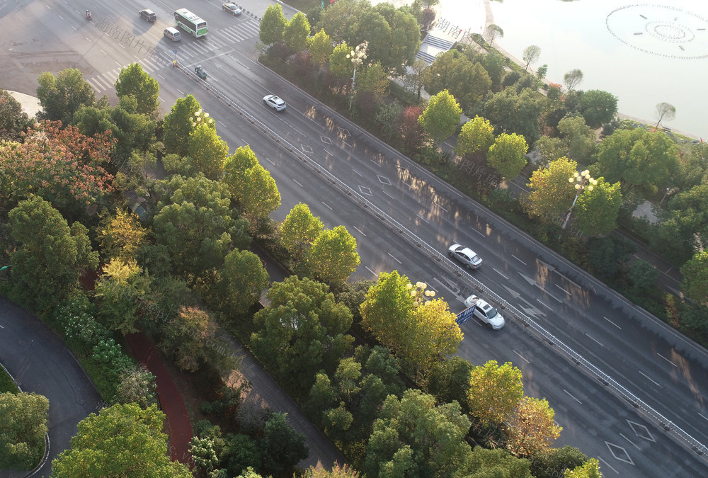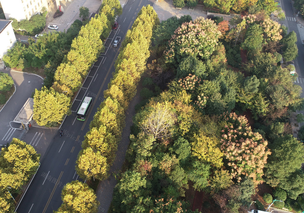 2023年10月22日,在湖南省娄底市双峰县永丰街道拍摄的思云路秋景(无人机照片)。乃继辉摄
