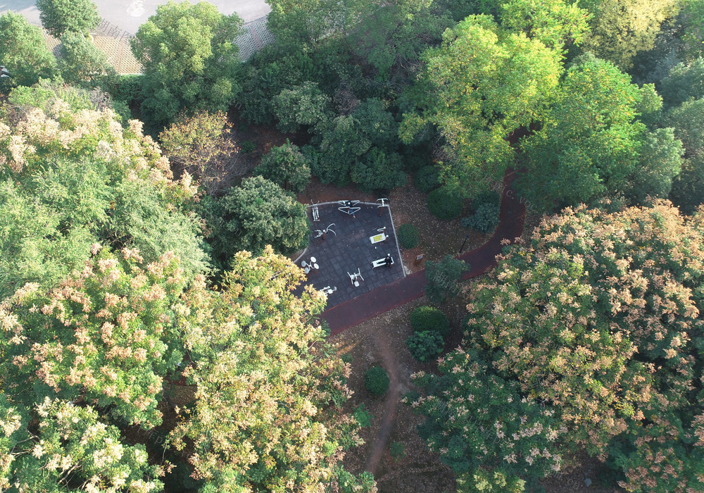 2023年10月22日,市民在湖南省娄底市双峰县新行政中心晨练(无人机照片)。乃继辉摄