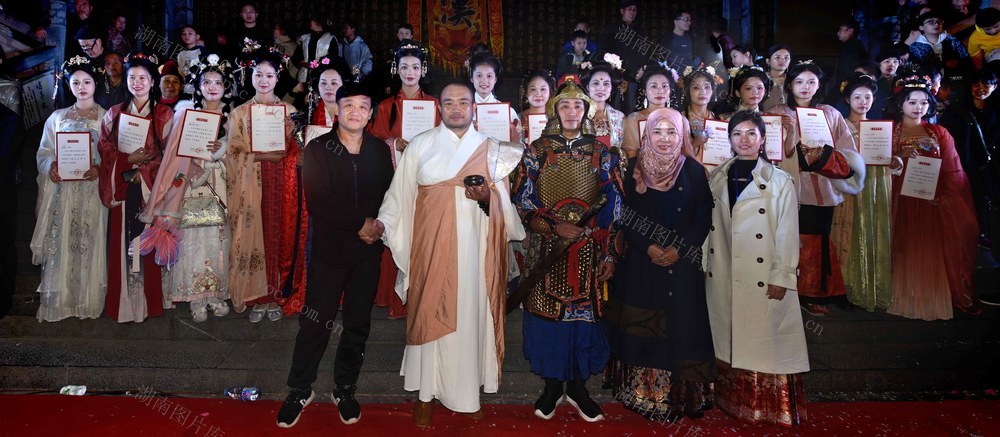 “高沙古镇杯”汉服超模大赛获奖者合影,定格美好瞬间。