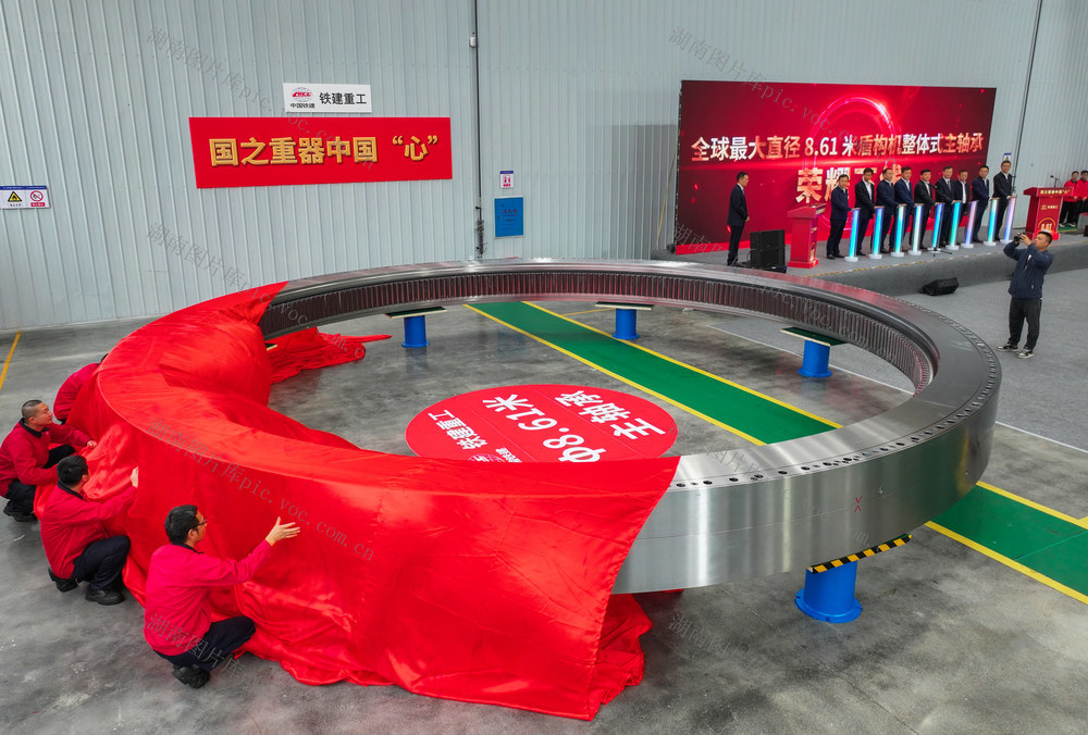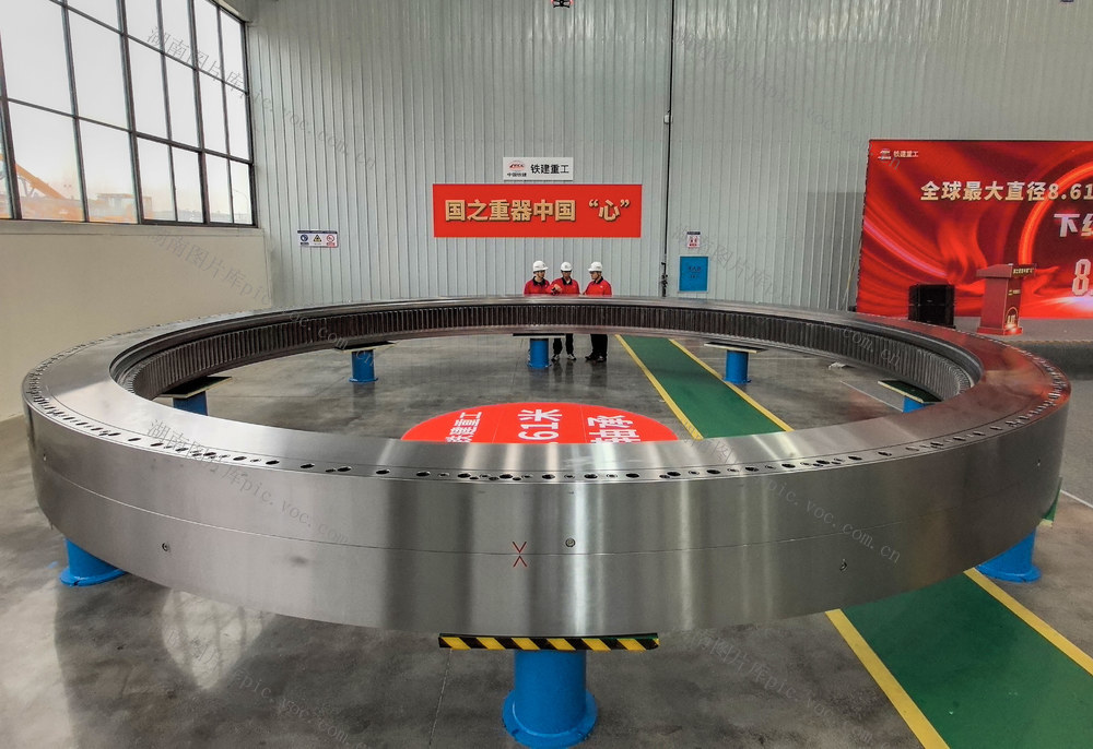 2023年10月12日,铁建重工长沙第二产业园,由铁建重工自主研制的直径8.61米盾构机主轴承下线。这是迄今全球直径最大、单体最重、承载最高的整体式盾构机主轴承。郭立亮 摄