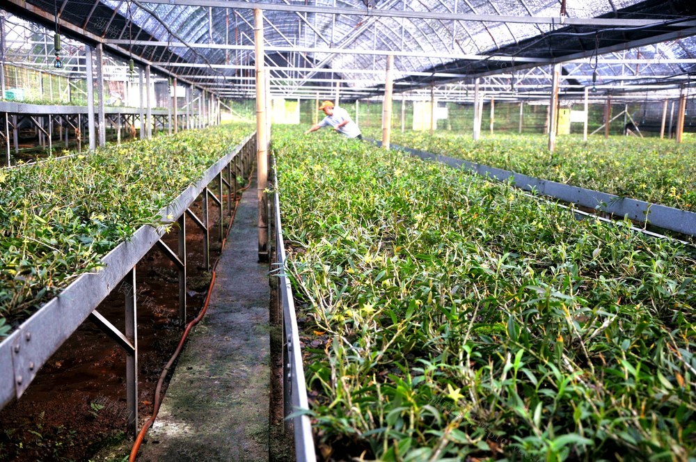 2024年6月21日,新宁县崀山镇联合村崀山铁皮石斛种植基地,民工在给铁皮石斛除草。石国兴 摄