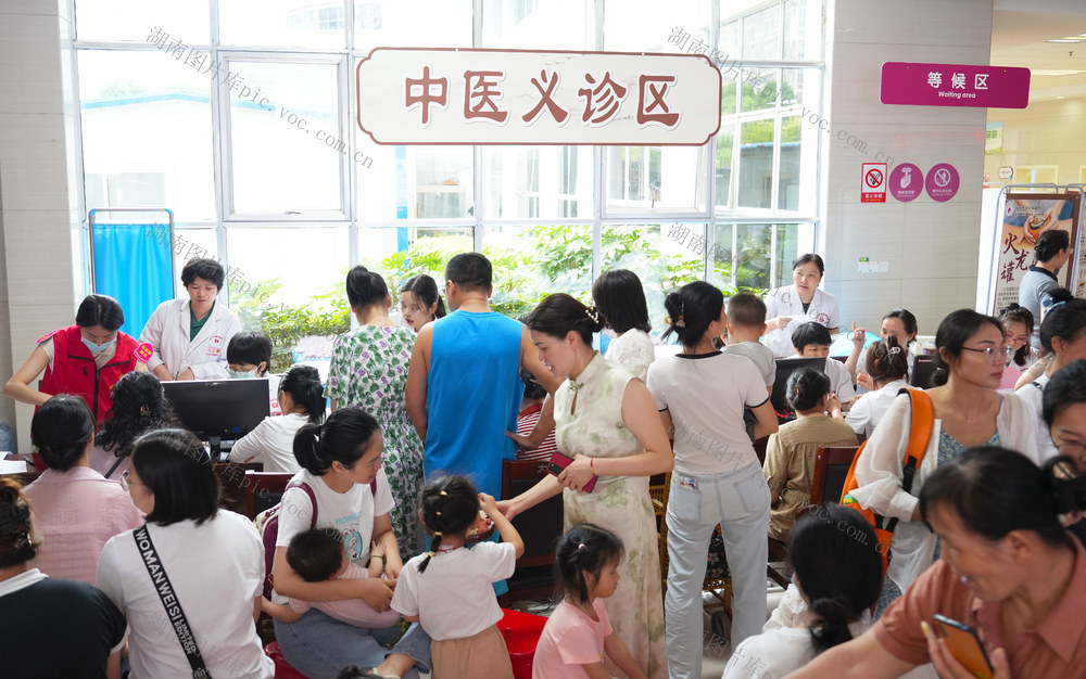 2024年6月29日,活动现场中医义诊区,市民们纷纷排队等候医护人员的诊疗服务。 文佳星 摄
