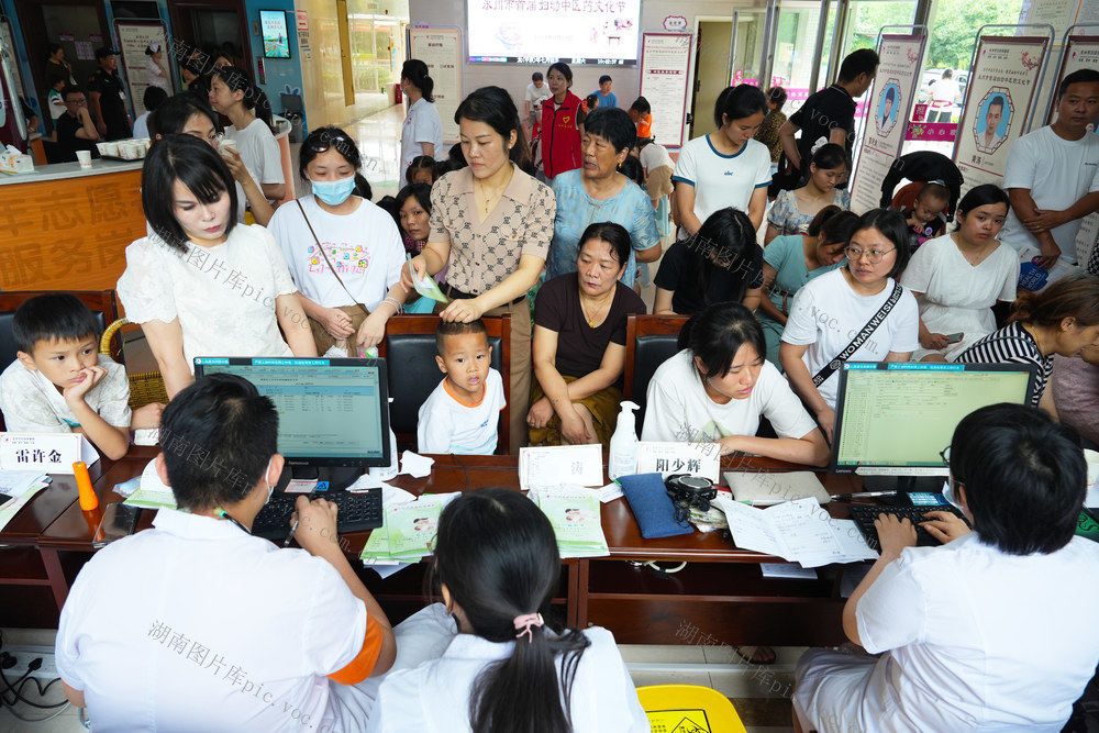 2024年6月29日,活动现场中医义诊区,市民们纷纷排队等候医护人员的诊疗服务。
