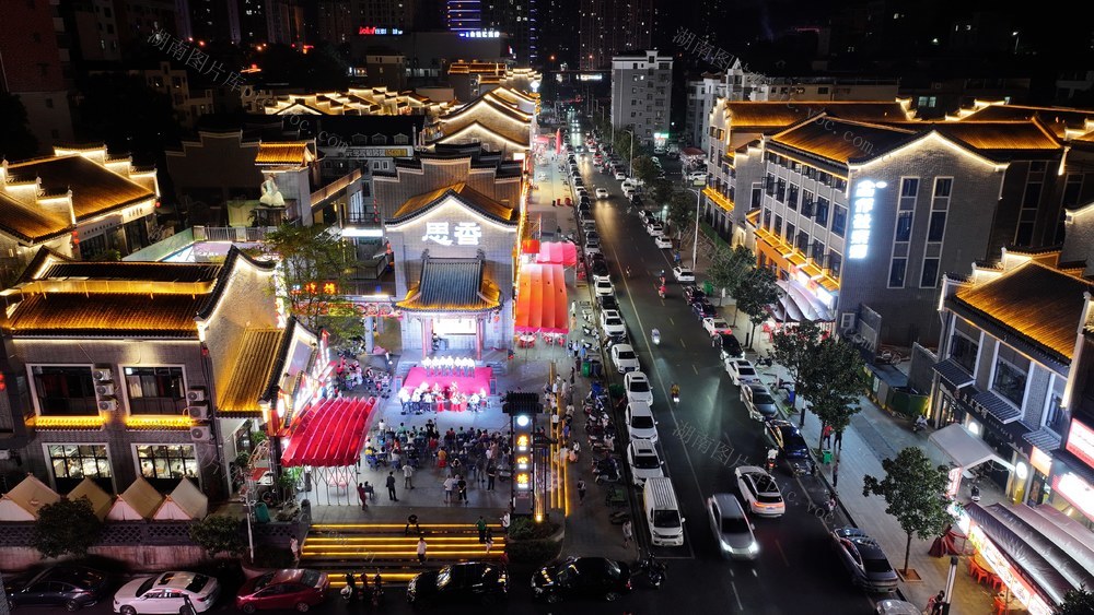 8月29日晚,航拍郴州市苏仙区白鹿洞街道磨心塘美食街周边夜景。黄建华 摄