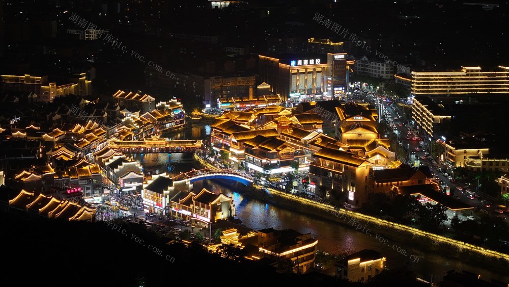 8月29日晚,航拍郴州市苏仙区白鹿洞街道磨心塘美食街周边夜景。黄建华 摄