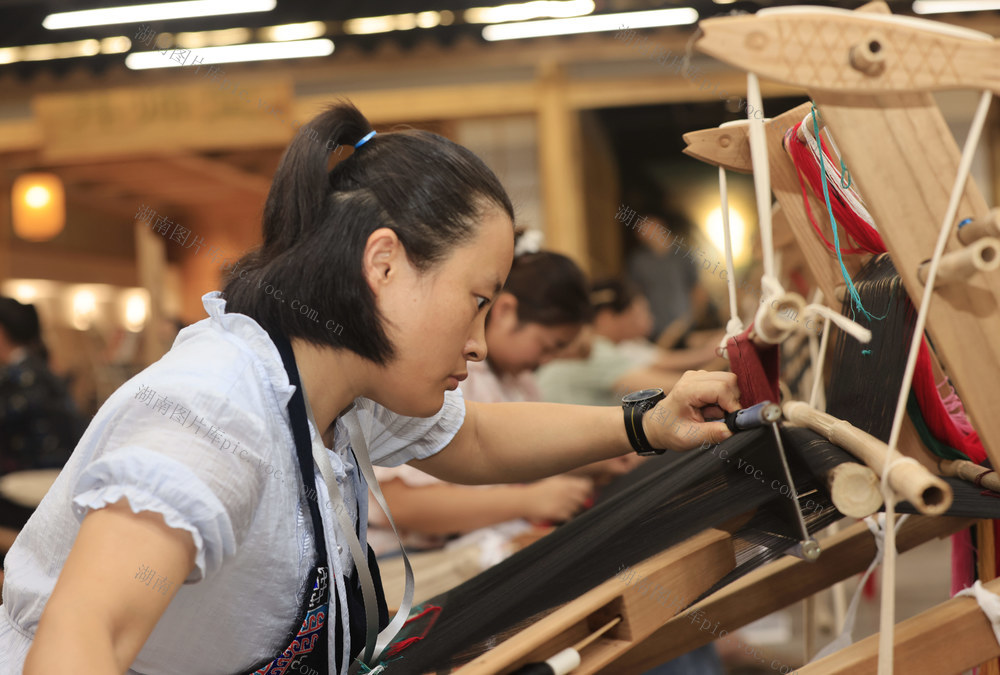 2024年9月20日,在张家界市“乖幺妹”土家织锦文化创意园,织锦女工进行土家族织锦技能大赛。吴勇兵 摄