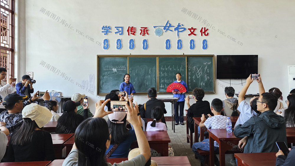 2024年10月5日,游客在湖南省永州市江永县女书生态博物馆了解女书文化。周秀鱼春 摄
