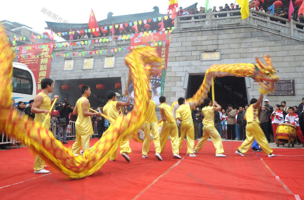 岳麓山东大门元宵舞龙 2009年2月9日,长沙市岳麓山风景区东大门,举行元宵节舞龙表演。田超 摄
